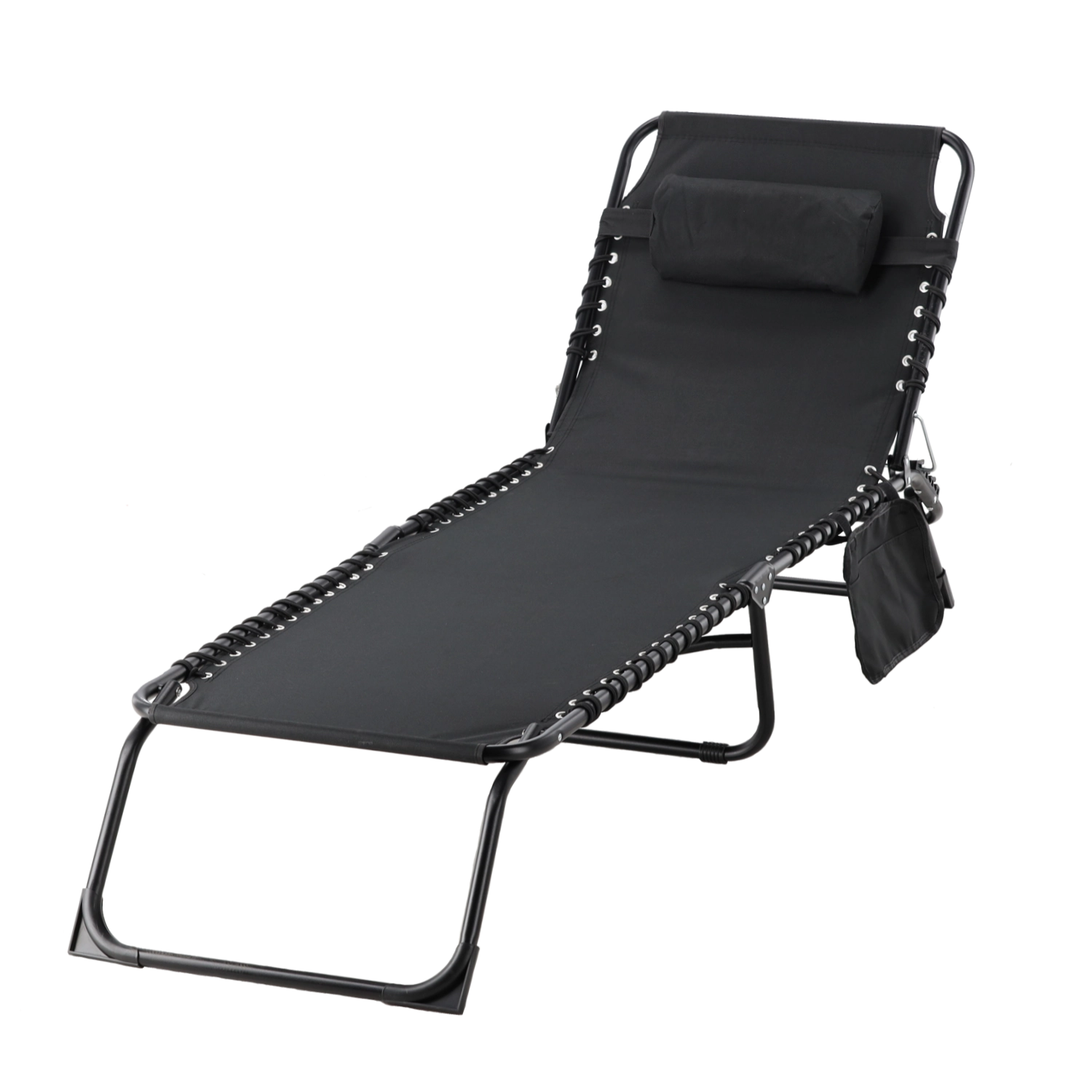 Ležaljka spaja stabilnost i udobnost u laganom, prijenosnom obliku. Robustan čelični okvir s praškastim premazom osigurava dugotrajnost, a izdržljiva tkanina je prozračna i jednostavna za čišćenje. Praktičan bočni džep čuva telefon, knjigu ili sunčane naočale uvijek pri ruci.