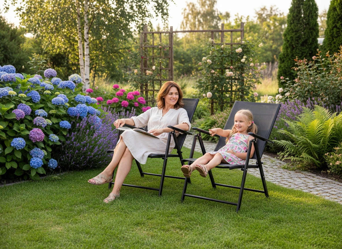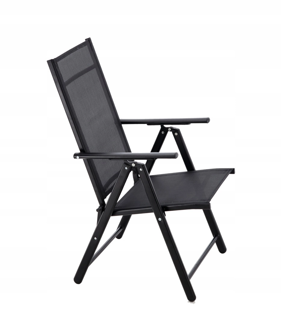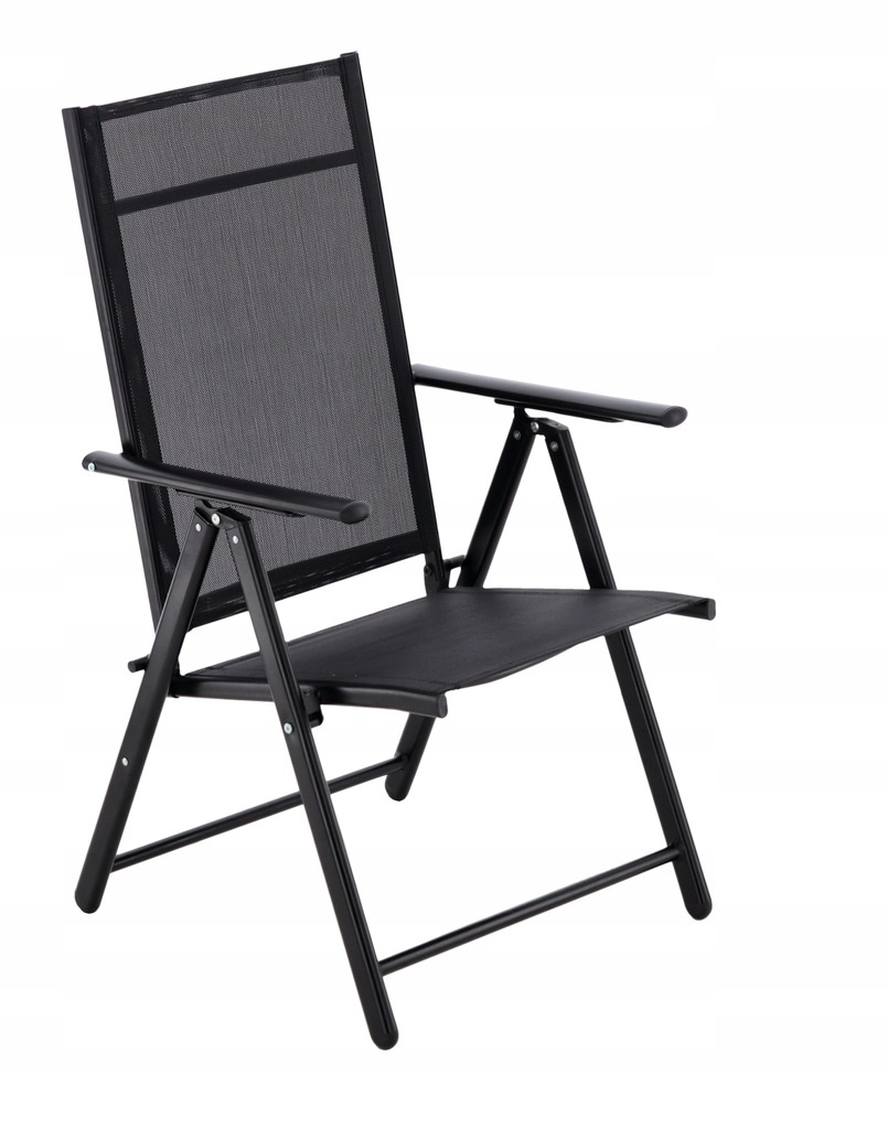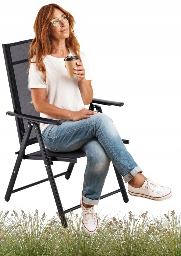 Ova crna sklopiva stolica spaja moderan izgled i praktičnost za svakodnevnu uporabu u vrtu, na terasi i balkonu. Stabilna čelična konstrukcija s praškastim premazom odolijeva vremenskim utjecajima, dok je tekstilna mrežica ugodna, brzo se suši i lako se održava.