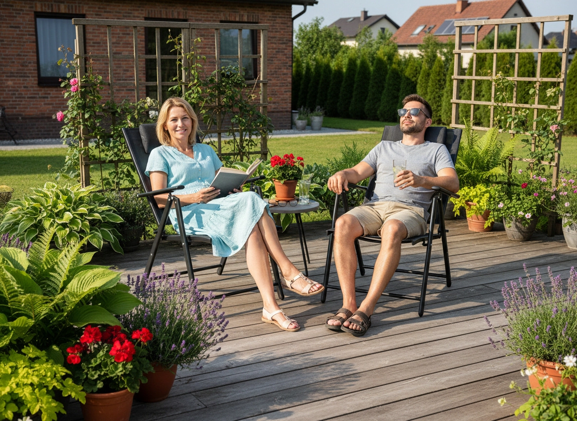 Uživajte na otvorenom sa sklopivom vrtnom stolicom s izdržljivim čeličnim okvirom s praškastim premazom i prozračnim tekstilnim sjedalom. Zahvaljujući naslonu s 7 stupnjeva podešavanja lako prilagodite sjedenje za opuštanje ili blagovanje. Lagana, sklopiva konstrukcija olakšava prenošenje i pohranu, dok visoki naslon i nasloni za ruke osiguravaju stabilnu i udobnu potporu na terasi, balkonu i u vrtu.