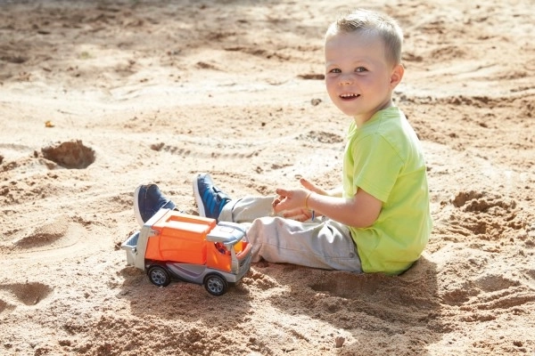 Kamion ima preklopnu kabinu s aktivnom figuricom vozača i stražnji kontejner kojim je lako rukovati. Djeca će uživati u realističnom utovaru i istovaru „otpada“, uvježbati motoriku te naučiti osnovne principe recikliranja i urednosti.
