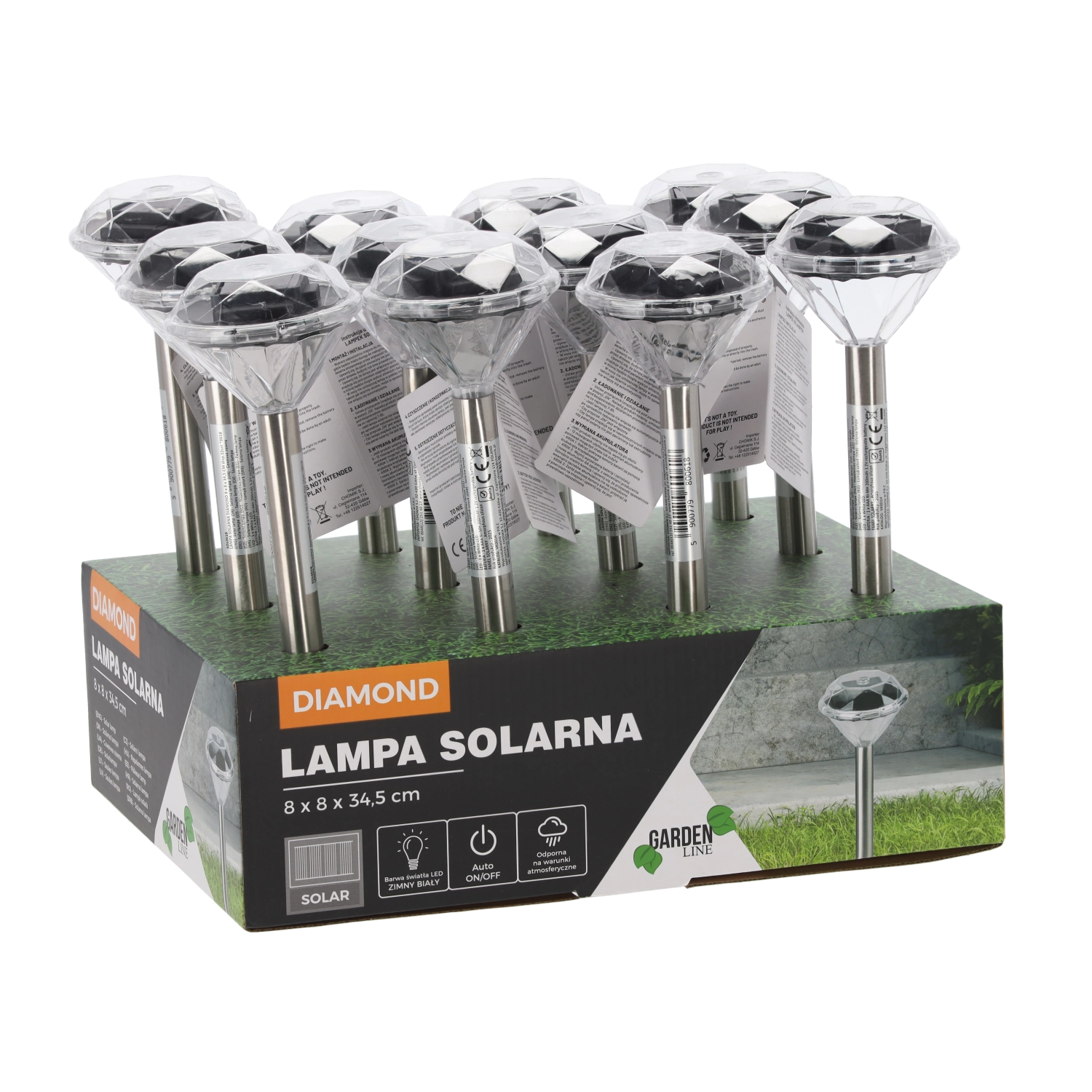 Stilska solarna lampa DIAMOND s bijelom LED idealna je za osvjetljenje vrtnih staza, terasa i prilaza. Zahvaljujući napajanju sunčevom energijom bežična je, štedljiva i otporna na vremenske uvjete (IP44). Nehrđajući čelik u satenskoj završnoj obradi i jednostavna ugradnja pomoću zemnog klina jamče brzo i elegantno rješenje vanjske rasvjete bez dodatnih troškova.