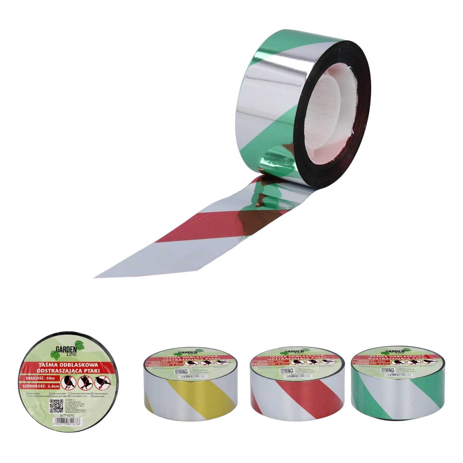 Praktična reflektirajuća traka za plašenje ptica štiti vrtove, balkone i urod. Zahvaljujući reflektirajućoj površini i kretanju na vjetru učinkovito sprječava sletanje ptica na zaštićenim mjestima. Jednostavna instalacija – dovoljno ju je objesiti ili zategnuti tamo gdje trebate zaštitu. Prodaje se u mješavini boja.