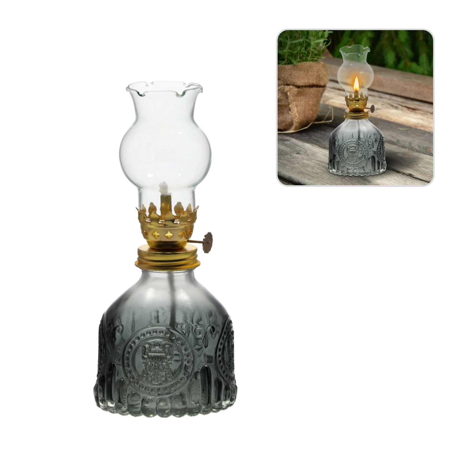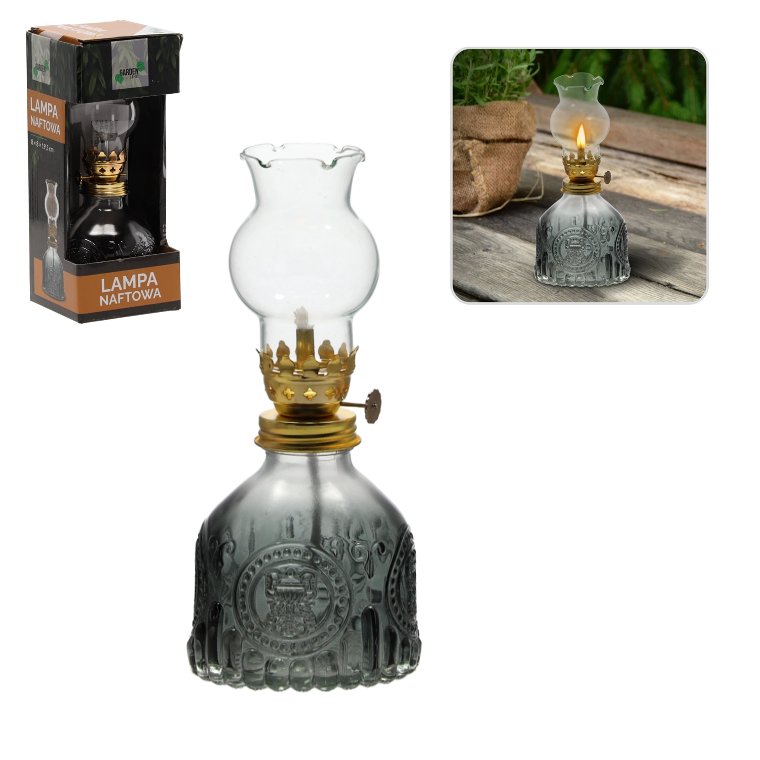 Otkrijte čaroliju tradicionalne rasvjete. Staklena petrolejska lampa spaja elegantan izgled s funkcionalnom uporabom. Savršena je kao dekorativni element za dnevni boravak, spavaću sobu ili vrt, gdje stvara ugodnu atmosferu s nježnim, toplim svjetlom.