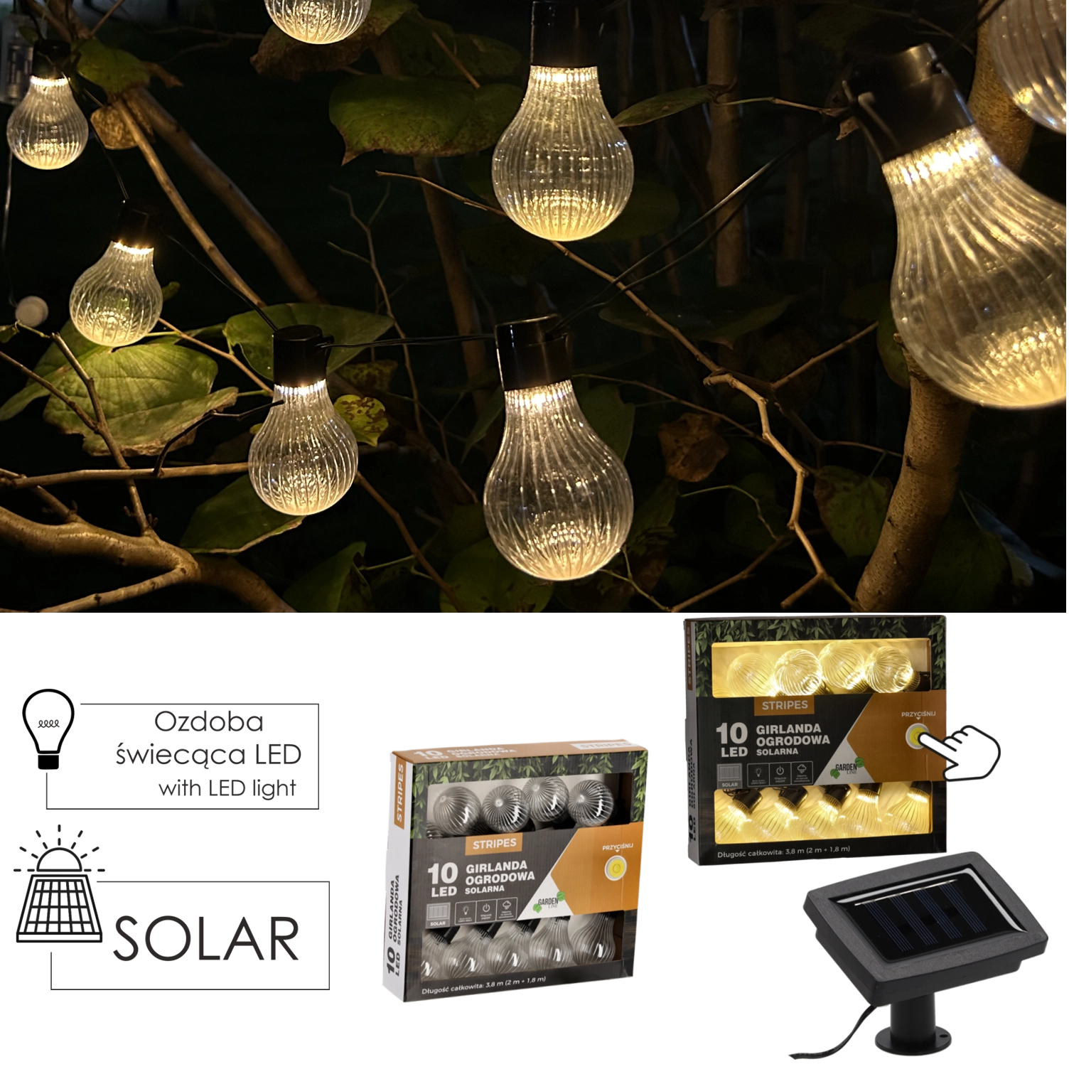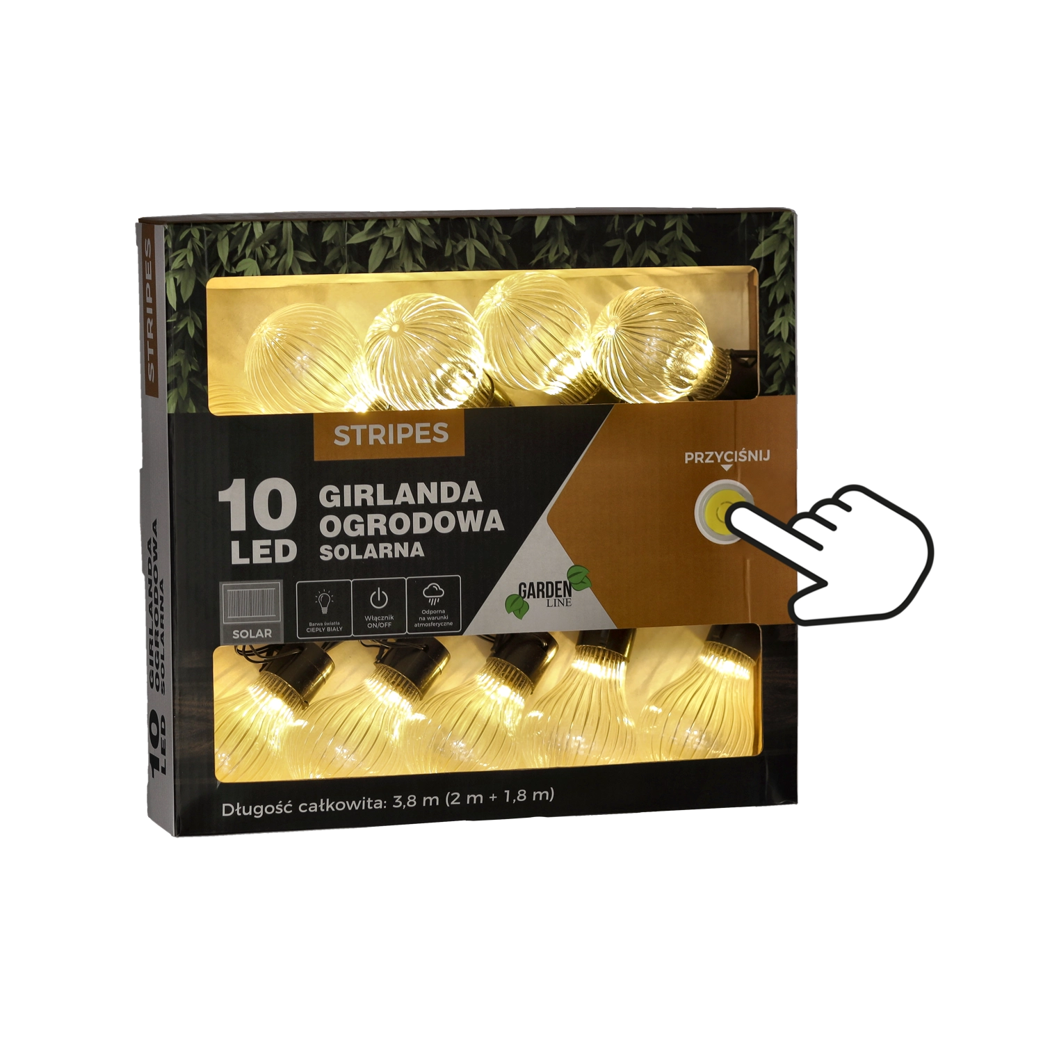 Solarni svjetlosni lanac STRIPES duljine 3,8 m (2 m dovodni kabel + 1,8 m osvijetljeni dio) idealan je za vanjske dekoracije – od pergola i grana drveća do ograda. Toplo bijelo svjetlo stvara ugodnu kulisu za druženja i vrtne zabave, a zahvaljujući solarnom napajanju štedi energiju i novac.