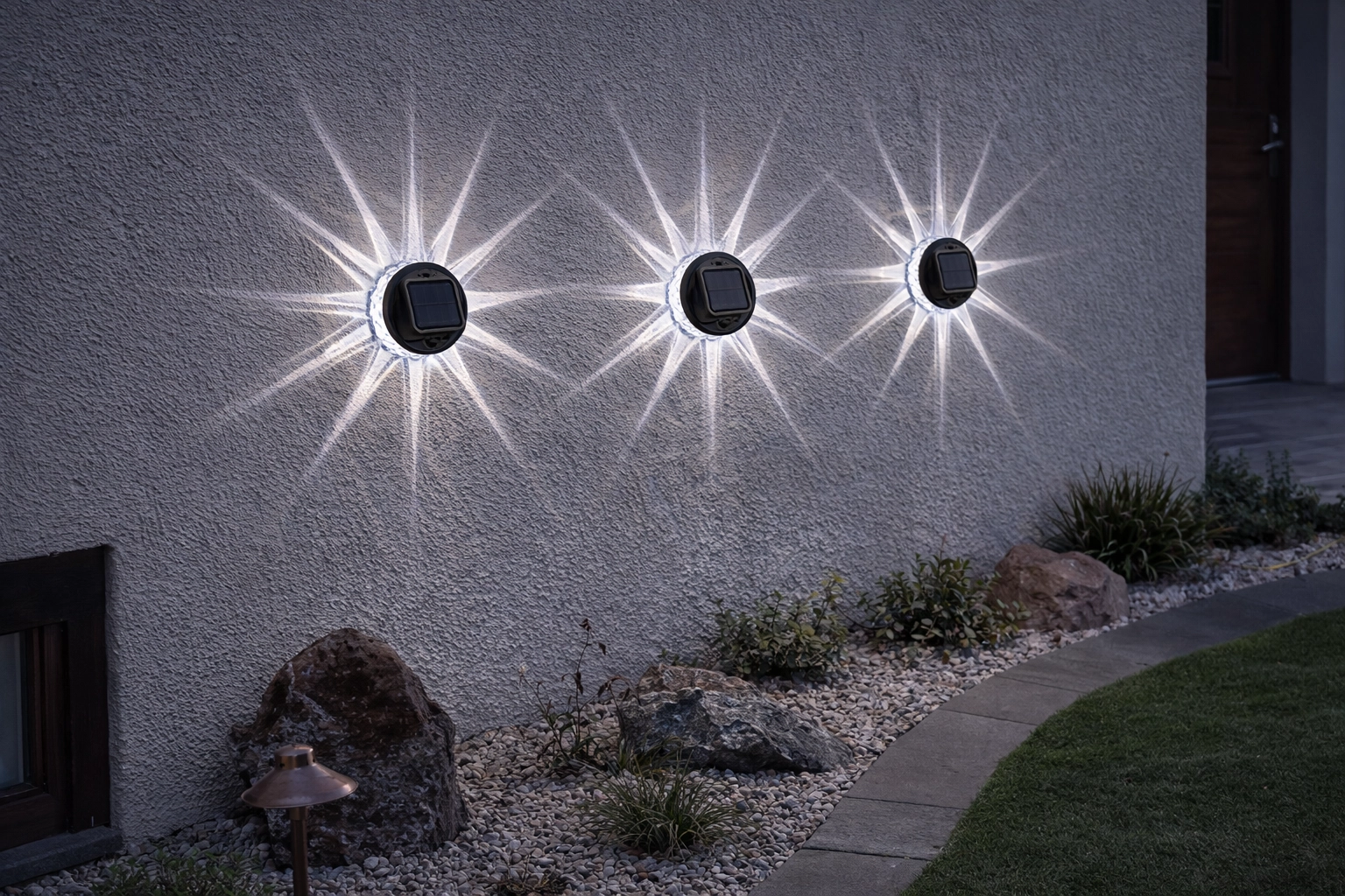 Ova kompaktna solarna svjetla dimenzija 10 × 10 × 2,5 cm idealna su za osvjetljenje staza, ograda, fasada i ulaznih prostora. Odlikuju se jednostavnom montažom bez kablova, otpornošću na vremenske uvjete i ekonomičnim radom zahvaljujući integriranom akumulatoru. Hladno bijeli sjaj ističe arhitekturu i daje eksterijeru moderan karakter.