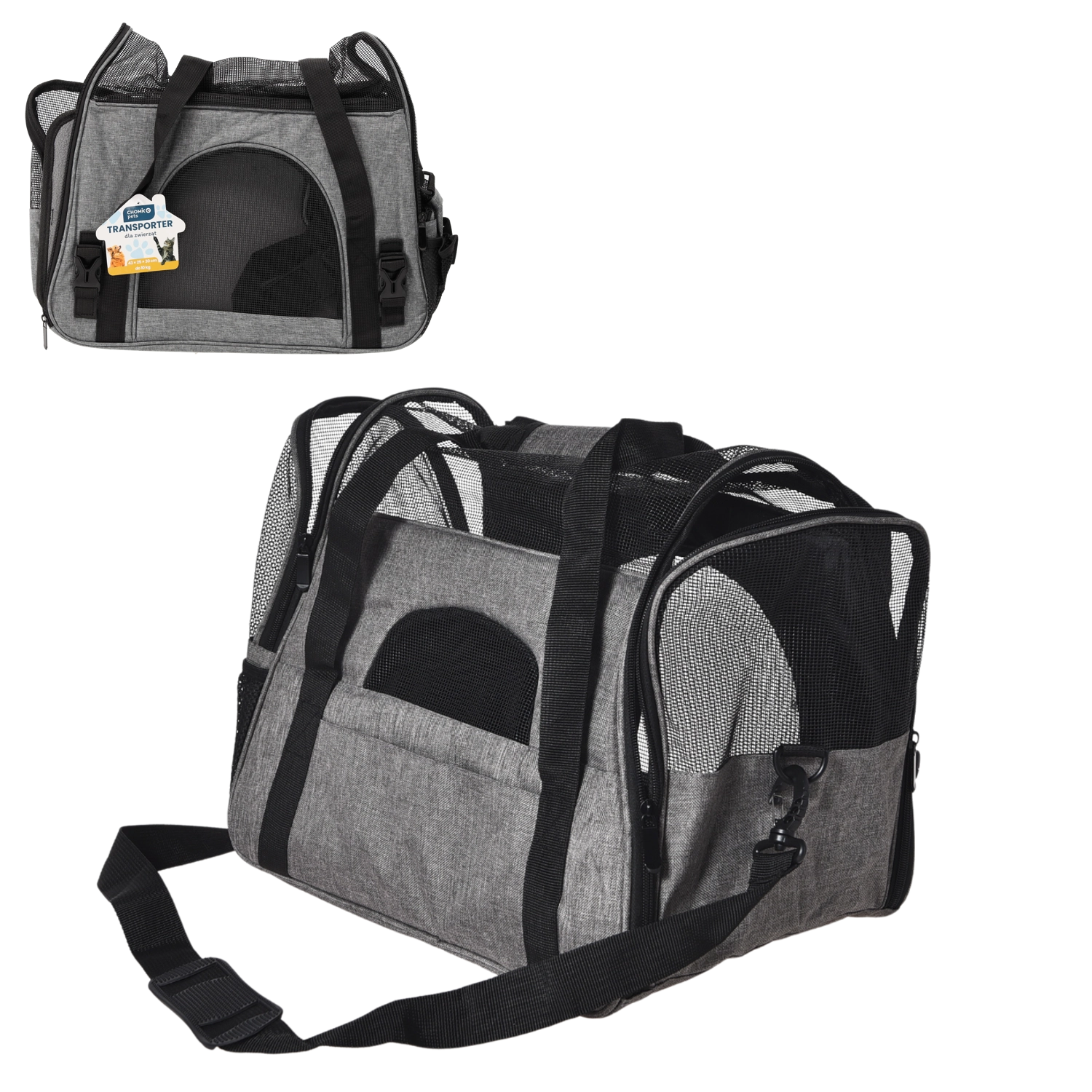 Tražite pouzdanu i laganu torbu za prijevoz manjih i srednje velikih životinja? Ova tekstilna torba kombinira izdržljivu konstrukciju s izvrsnom ventilacijom zahvaljujući mrežastim umetcima. Idealna je za putovanja automobilom, javnim prijevozom, posjete veterinaru i svakodnevne obaveze.