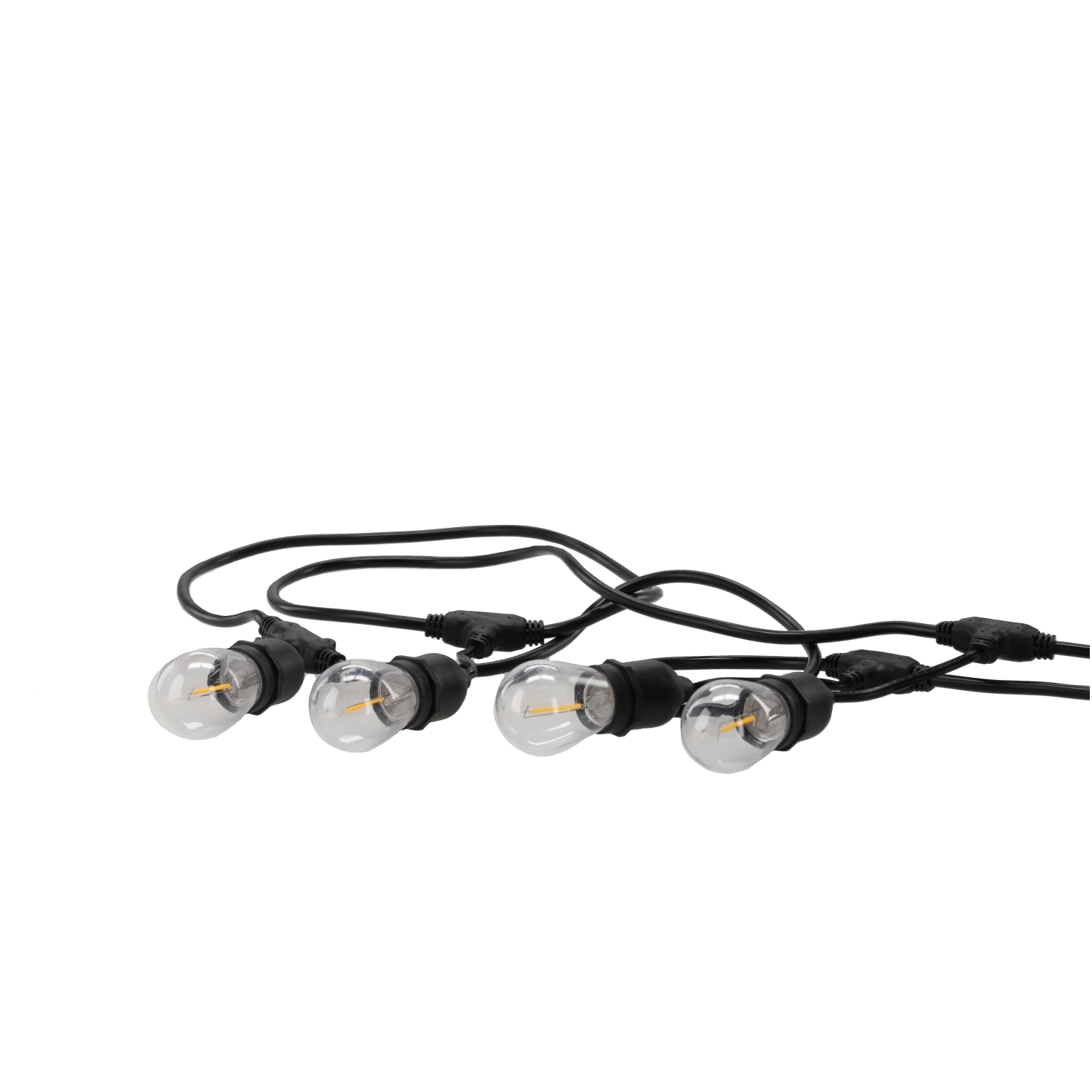 Stvorite čarobnu atmosferu na terasi, u vrtu ili na balkonu uz ovu vanjsku girlandu s 10 LED žarulja E27 koje svijetle toplo bijelom bojom 3000K. Izdržljivo IP44 kućište, mogućnost povezivanja do 120 setova i niska potrošnja (1 W po žarulji) čine je idealnim i ekonomičnim dekorativnim osvjetljenjem za svakodnevnu upotrebu.