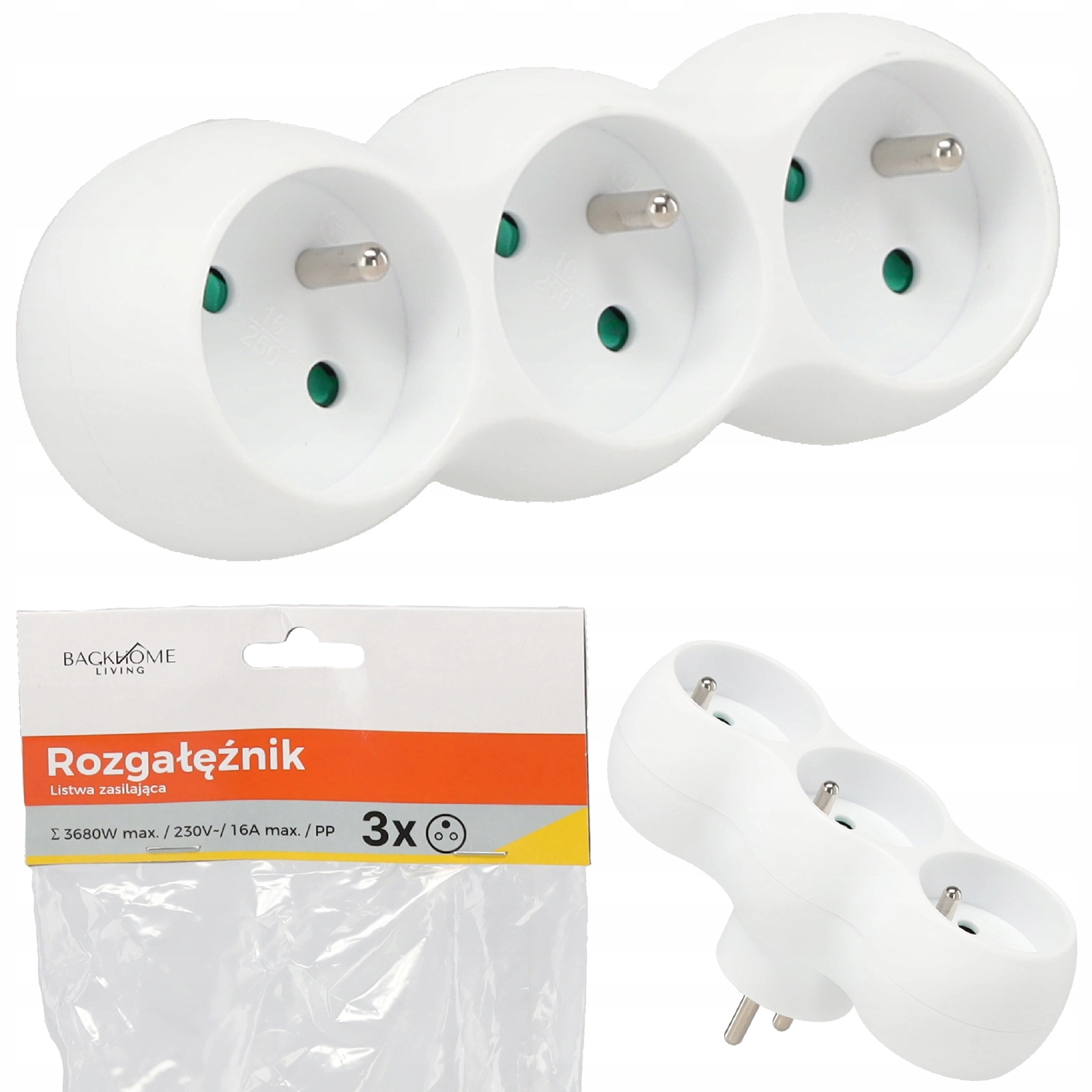 Praktičan bijeli razdjelnik s tri francuske (Schuko) utičnice za svakodnevnu upotrebu u kućanstvu i uredu. Nudi 3 utičnice 230 V, maks. snagu 3680 W i zaštitne kapke za djecu. Zahvaljujući izdržljivom PP materijalu i elegantnom bijelom dizajnu uklapa se u svaki interijer.