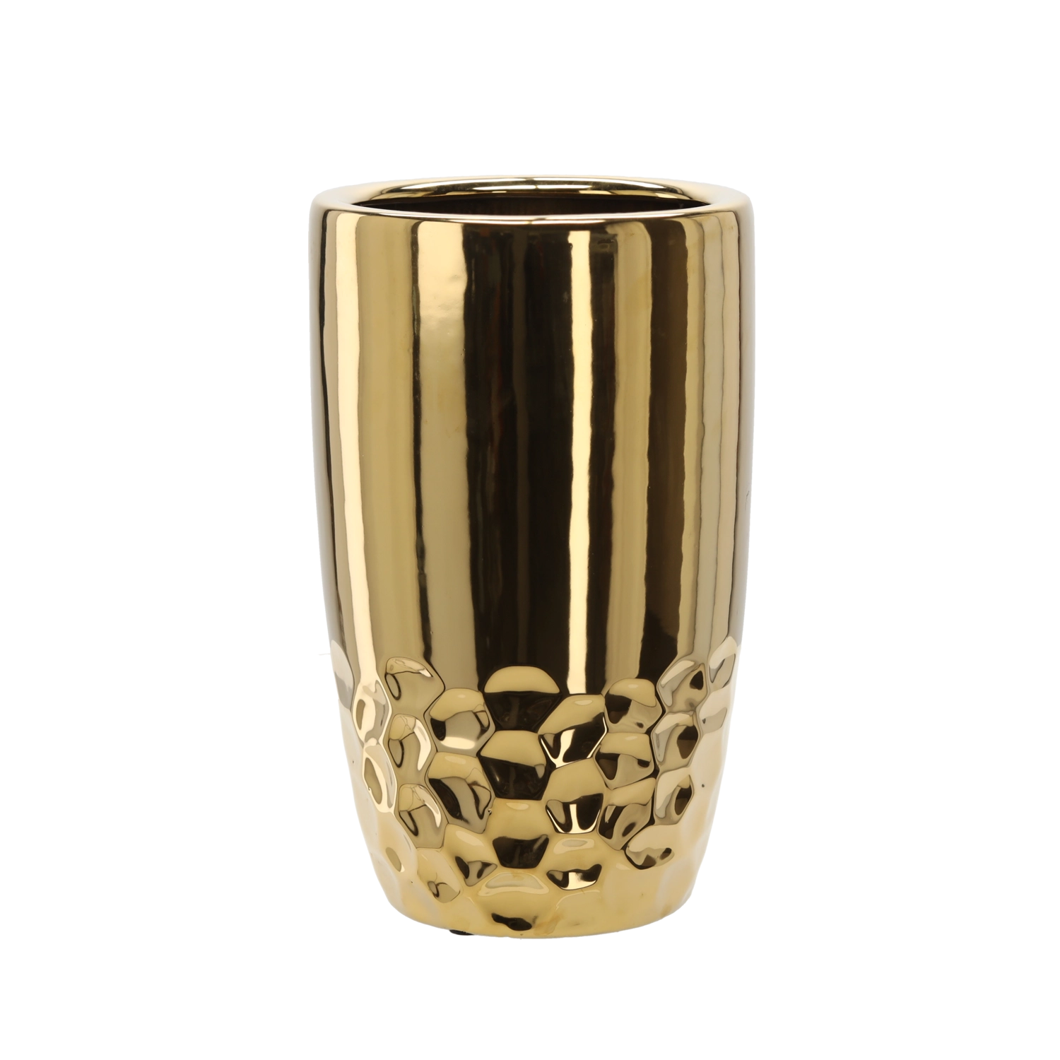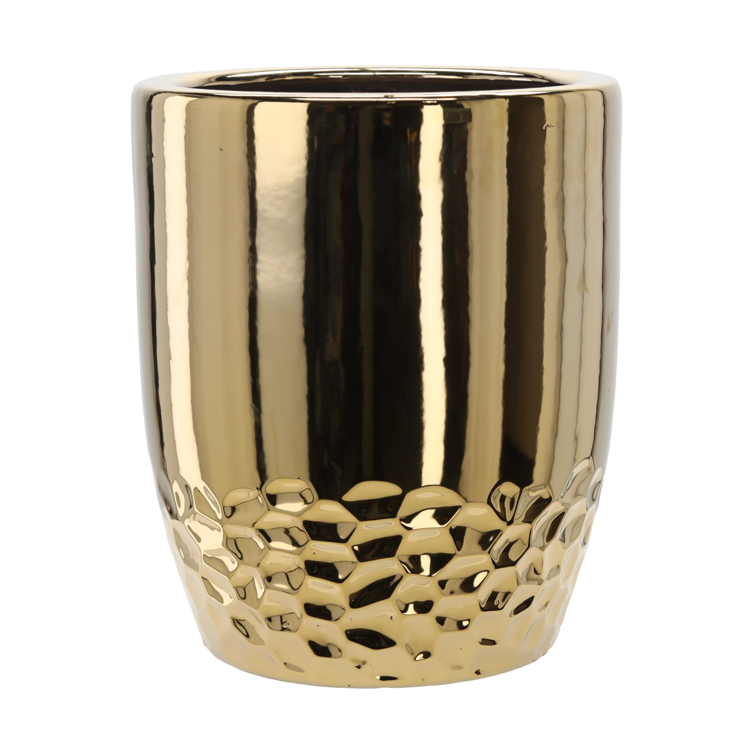 Ova moderna žardinjera u zlatnoj izvedbi savršeno ističe zelenilo i postaje stilska dominanta dnevnog boravka, hodnika ili ureda. Izdržljiva keramička konstrukcija bolje drži stabilnost viših biljaka te je jednostavna za održavanje.