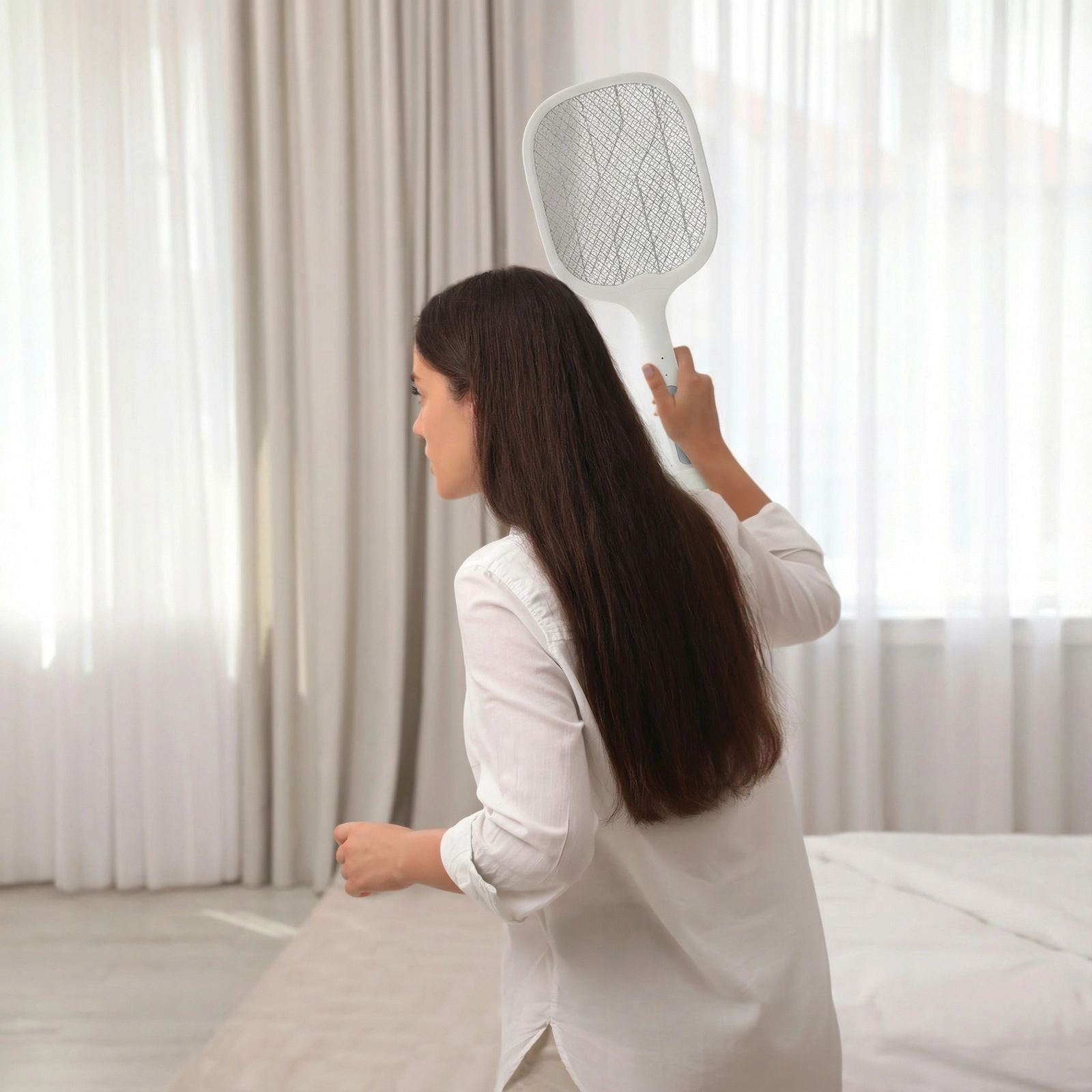 Praktična i sigurna muholovka 2-u-1 služi kao ručni lovac i kao samostojeća lampa za insekte. Zahvaljujući 6 UV LED (360–400 nm) učinkovito privlači komarce i muhe, koje zatim uklanja visokonaponska mrežica ~3000 V. Lagana i izdržljiva opcija za dom, vikendicu i terasu, s punjenjem preko USB‑C, do 7 sati rada i bez upotrebe kemikalija.