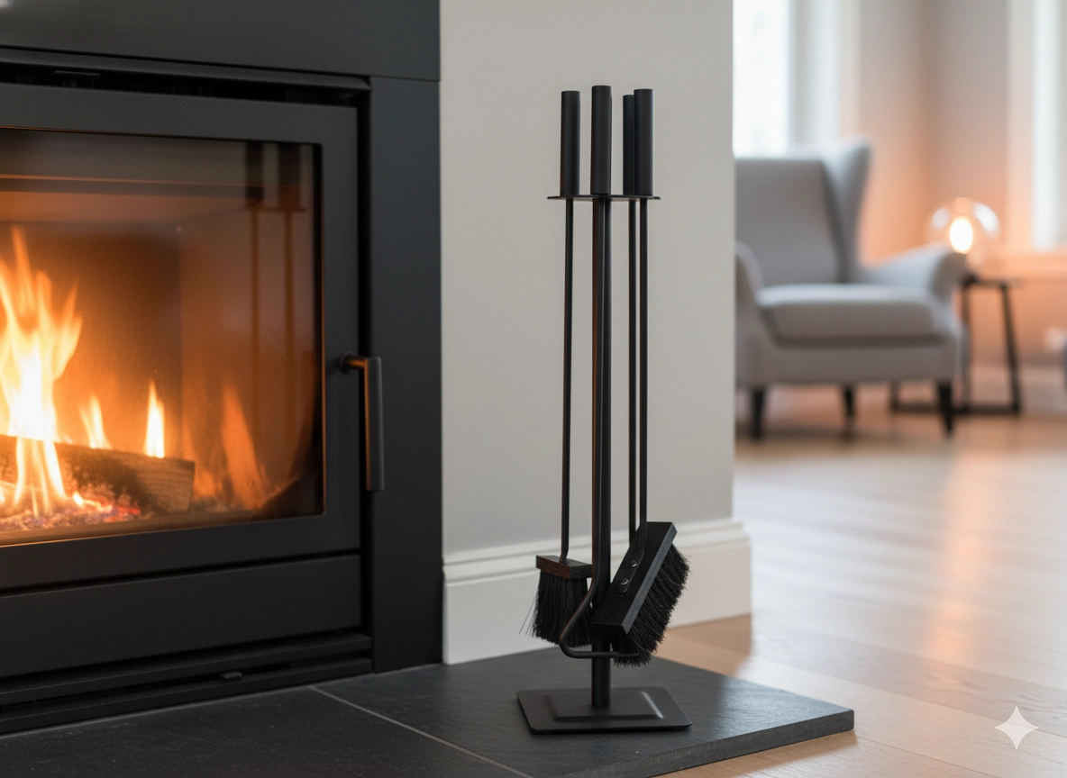 - Potpunu opremu za posluživanje kamina: lopaticu, metlicu i poker.