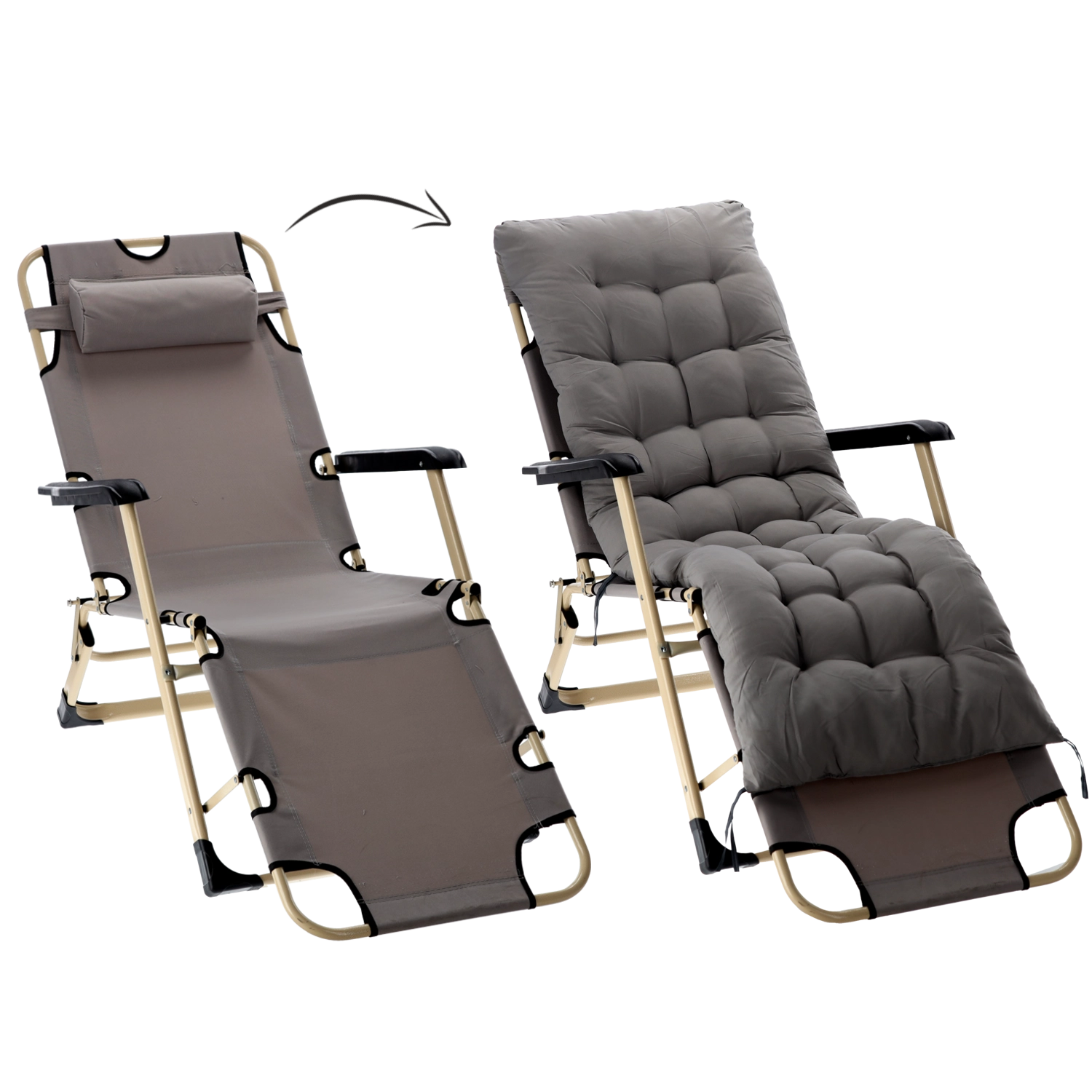 Praktičan ležaljka/stolica 2 u 1 kombinira stabilan čelični okvir s izdržljivom tkaninom Oxford 600D x 300D i debelom, prošivenom podstavom. Složite je u minuti i ponesite sa sobom – idealno za vrt, terasu, uz bazen i na putovanja.