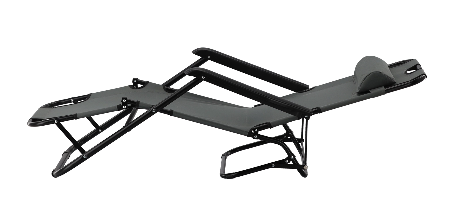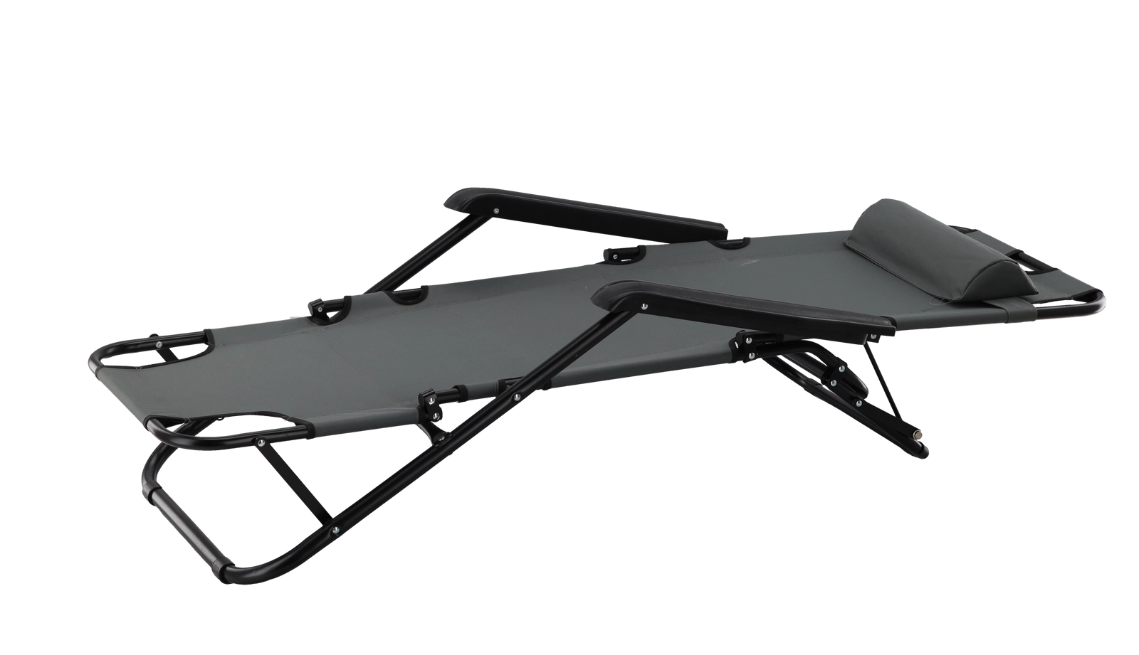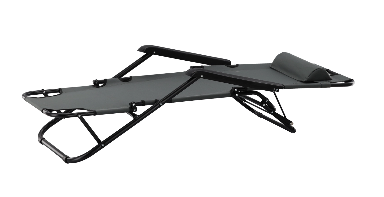 Uživajte u udobnosti na otvorenom sa sivom sklopivom ležaljkom s naslonom za glavu. Zahvaljujući laganoj konstrukciji, sklopivom dizajnu, podesivom naslonu za glavu i mogućnosti potpunog rasklapanja idealna je za vrt, terasu i putovanja.
