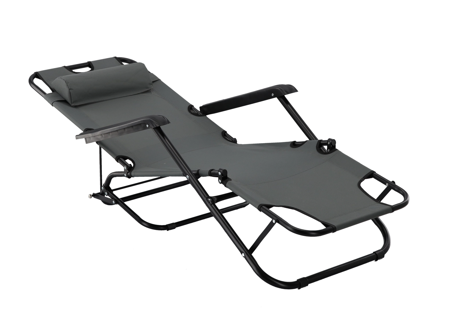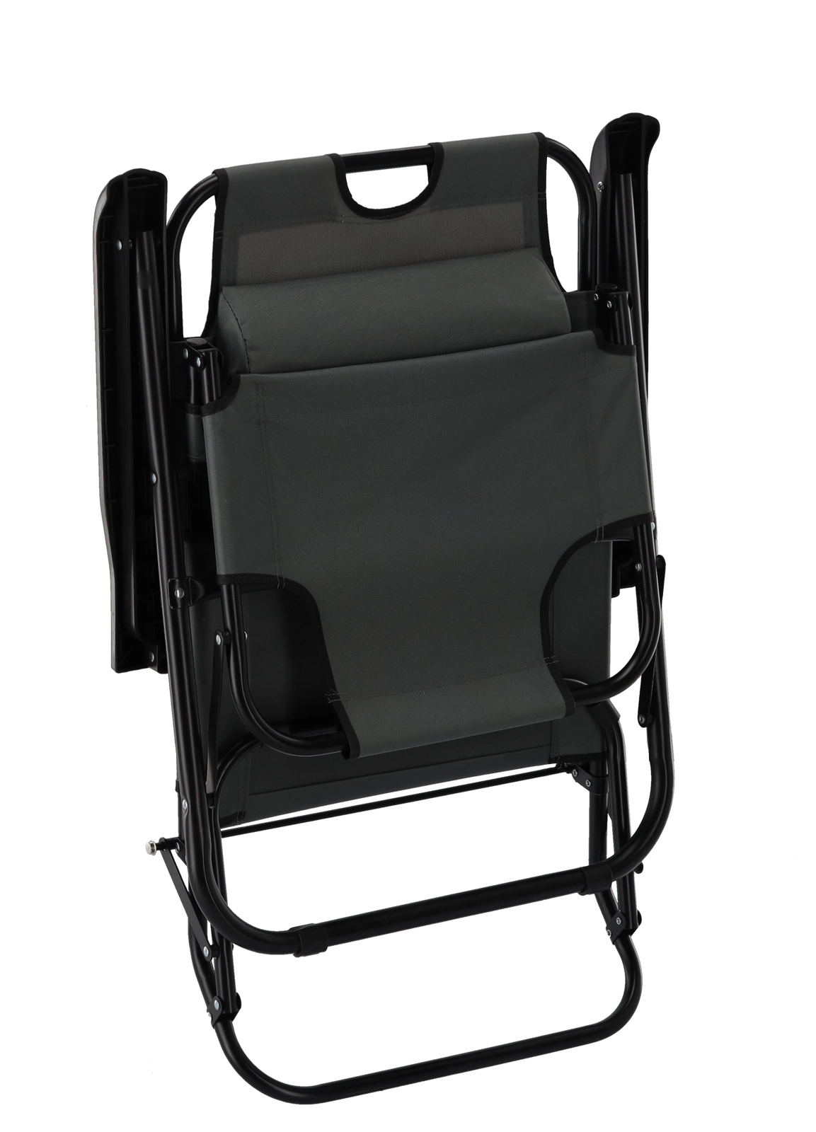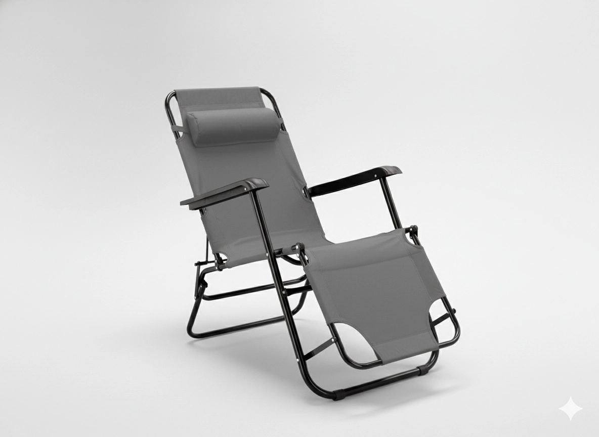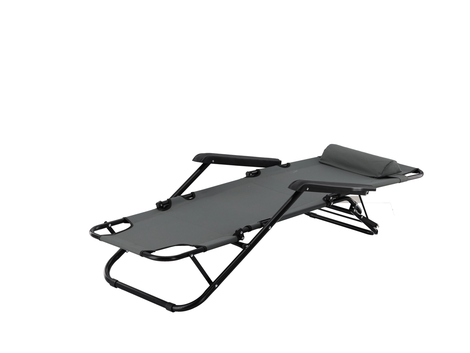 Uživajte u udobnosti na otvorenom sa sivom sklopivom ležaljkom s naslonom za glavu. Zahvaljujući laganoj konstrukciji, sklopivom dizajnu, podesivom naslonu za glavu i mogućnosti potpunog rasklapanja idealna je za vrt, terasu i putovanja.