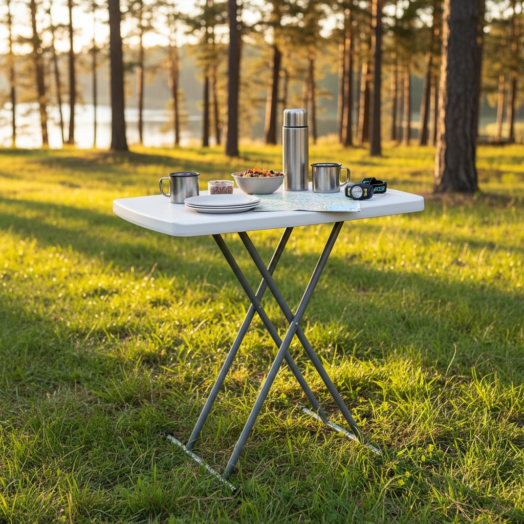 Praktičan i lagan sklopivi stol s podesivom visinom 36–71,5 cm idealan je za kampiranje, piknike, vrt i kućanstvo. Zahvaljujući stabilnoj metalnoj konstrukciji i izdržljivoj bijeloj ploči nudi pouzdanu potporu za posluživanje, rad i opuštanje. Nakon sklapanja zauzima minimalno mjesta, pa je lako prenosiv i spreman za pohranu.