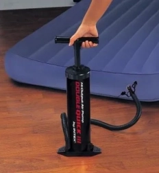 Intex Double Quick III je praktična ručna pumpa dizajnirana za brzo i udobno napuhavanje. Dvostruko-djelujući mehanizam upuhuje zrak pri pokretu prema gore i dolje, što značajno skraćuje vrijeme napuhavanja i štedi snagu. Čvrsta konstrukcija sa stabilnim osloncem za nogu drži pumpu na mjestu i pri intenzivnoj uporabi.
