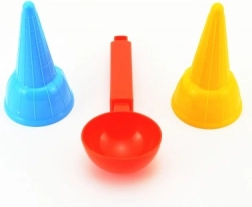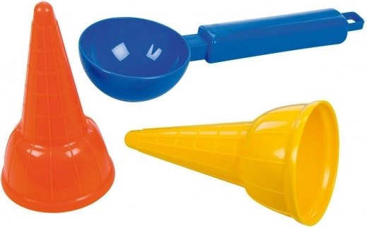 Ovaj šareni set za „sladoled“ pretvorit će svaki pješčanik u malu slastičarnicu. Djeca mogu zahvaćati pijesak ili vodu, stvarati kugle „sladoleda“ i posluživati ih u kornete. Lagana i izdržljiva izrada osigurava udobno korištenje i dugi vijek trajanja.