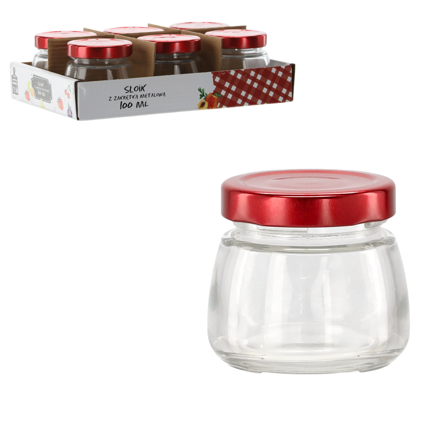 Ova kompaktna staklenka od 100 ml izvrsna je za domaće zimnice, čuvanje začina, bilja ili manjih porcija umaka. Kvalitetno staklo je prozirno, tako da uvijek imate savršen pregled nad sadržajem, a crveni metalni poklopac osigurava pouzdano zatvaranje.
