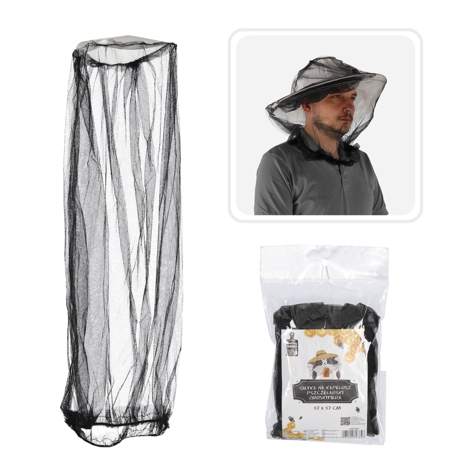 Praktična pčelarska moskitijera za šešir dimenzija 57 × 57 cm pruža pouzdanu zaštitu od pčela, osa i ostalog bodljikavog insekata. Izrađena je od kvalitetnih materijala, ima finu mrežu za izvrsnu vidljivost i elastičnu gumu za udobno i sigurno nošenje.