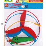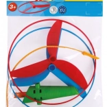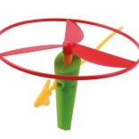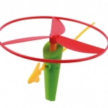 U paketu dolaze dvije elise koje se lako ispaljuju mehanizmom na zelenoj ručki. Jarke crvene i plave boje rotora daju igrački dodatnu vizualnu privlačnost i potiču dječju maštu.