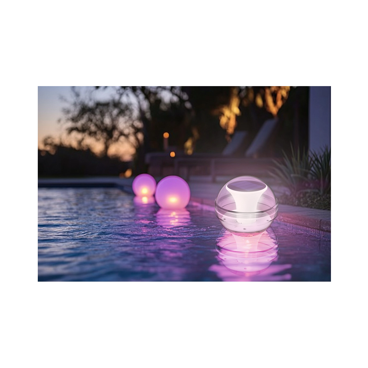 Prozirna kugla je potpuno zapečaćena i sigurno pluta na površini. Zaštita IP65 štiti od kiše i prskajuće vode – idealno za bazen i vrt.