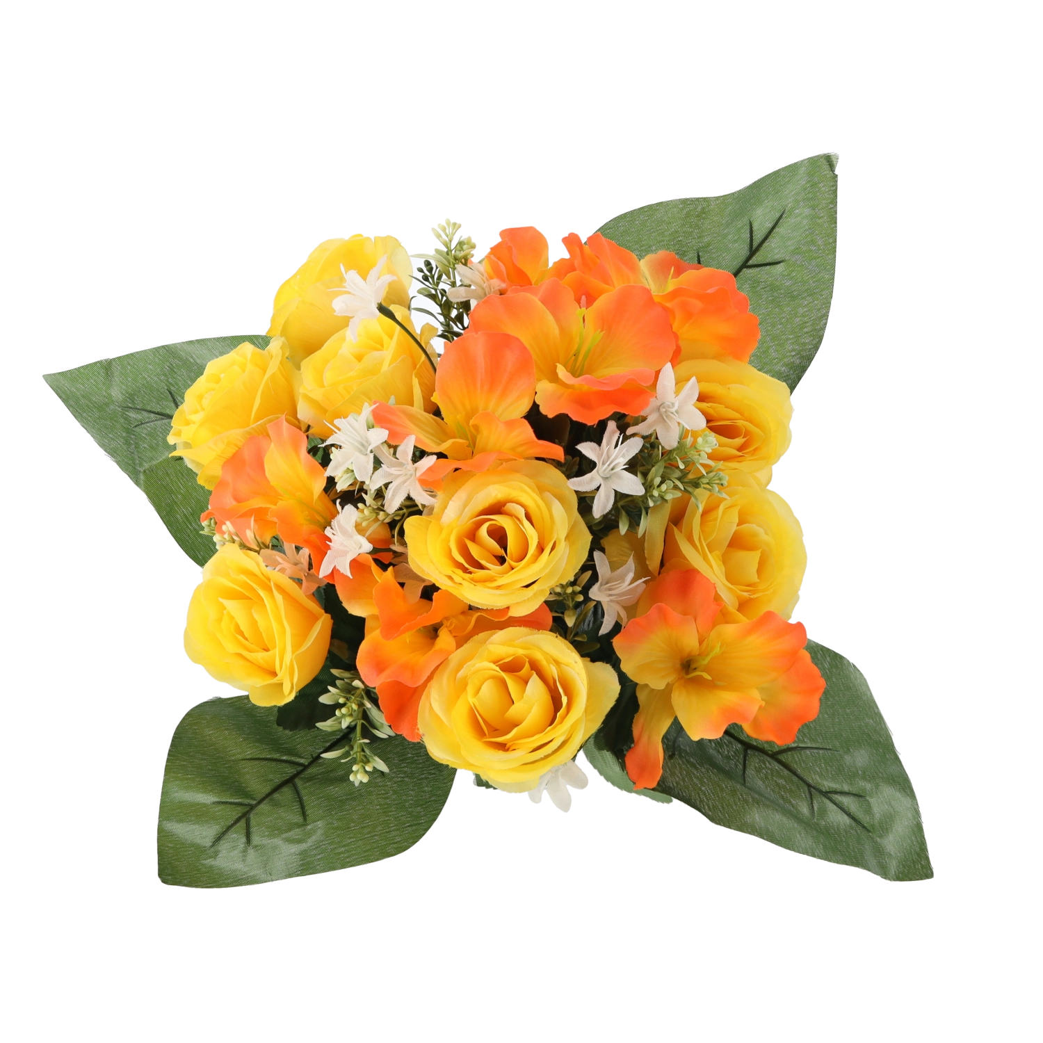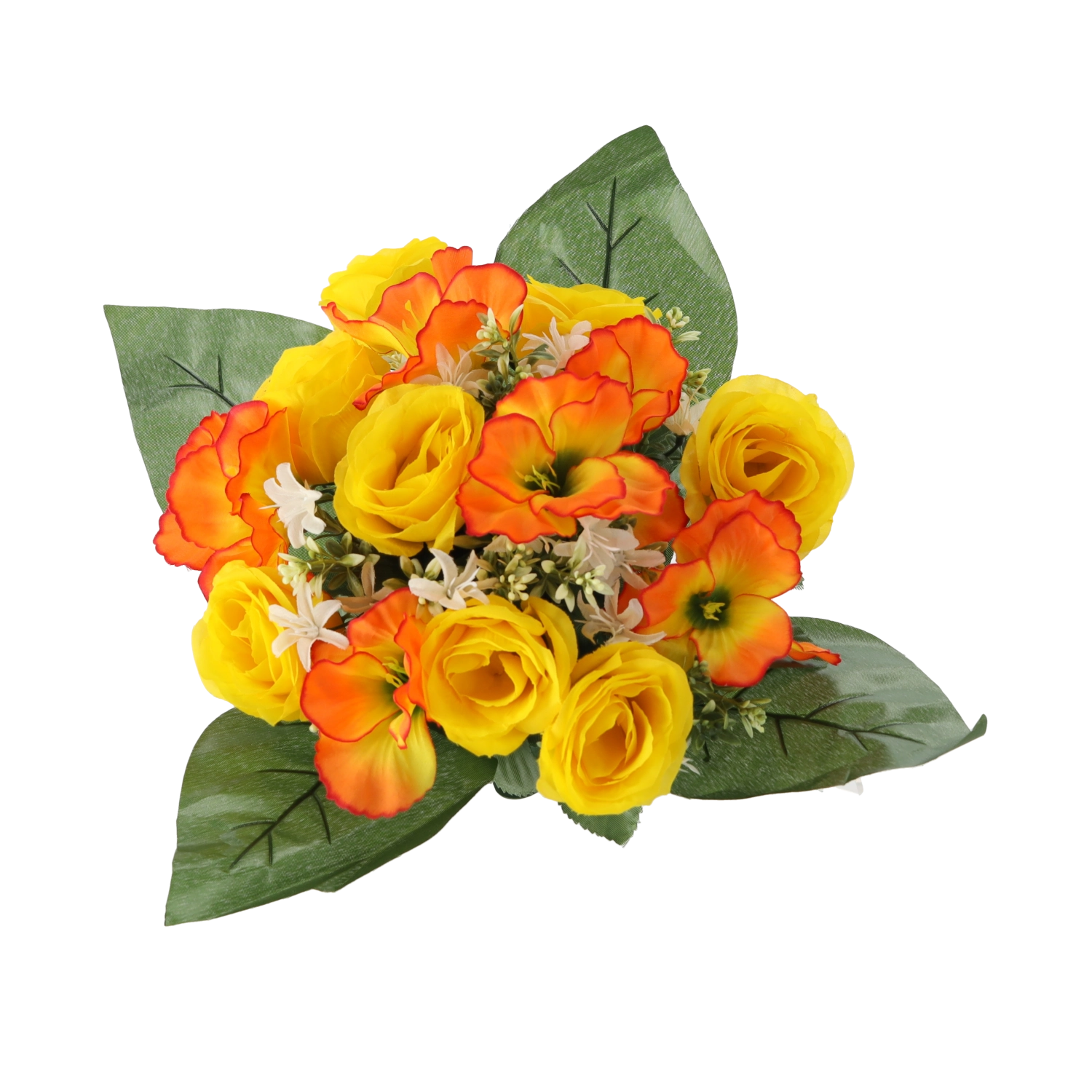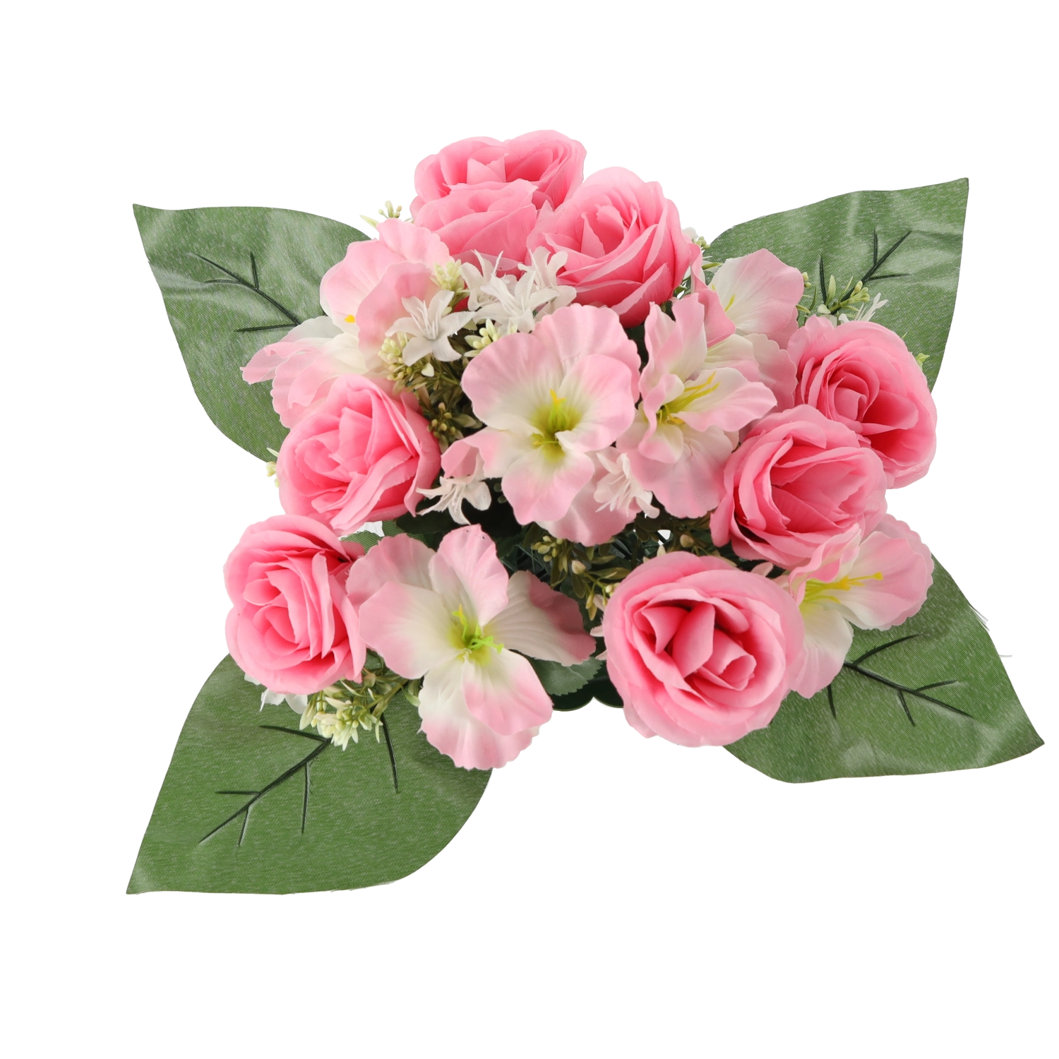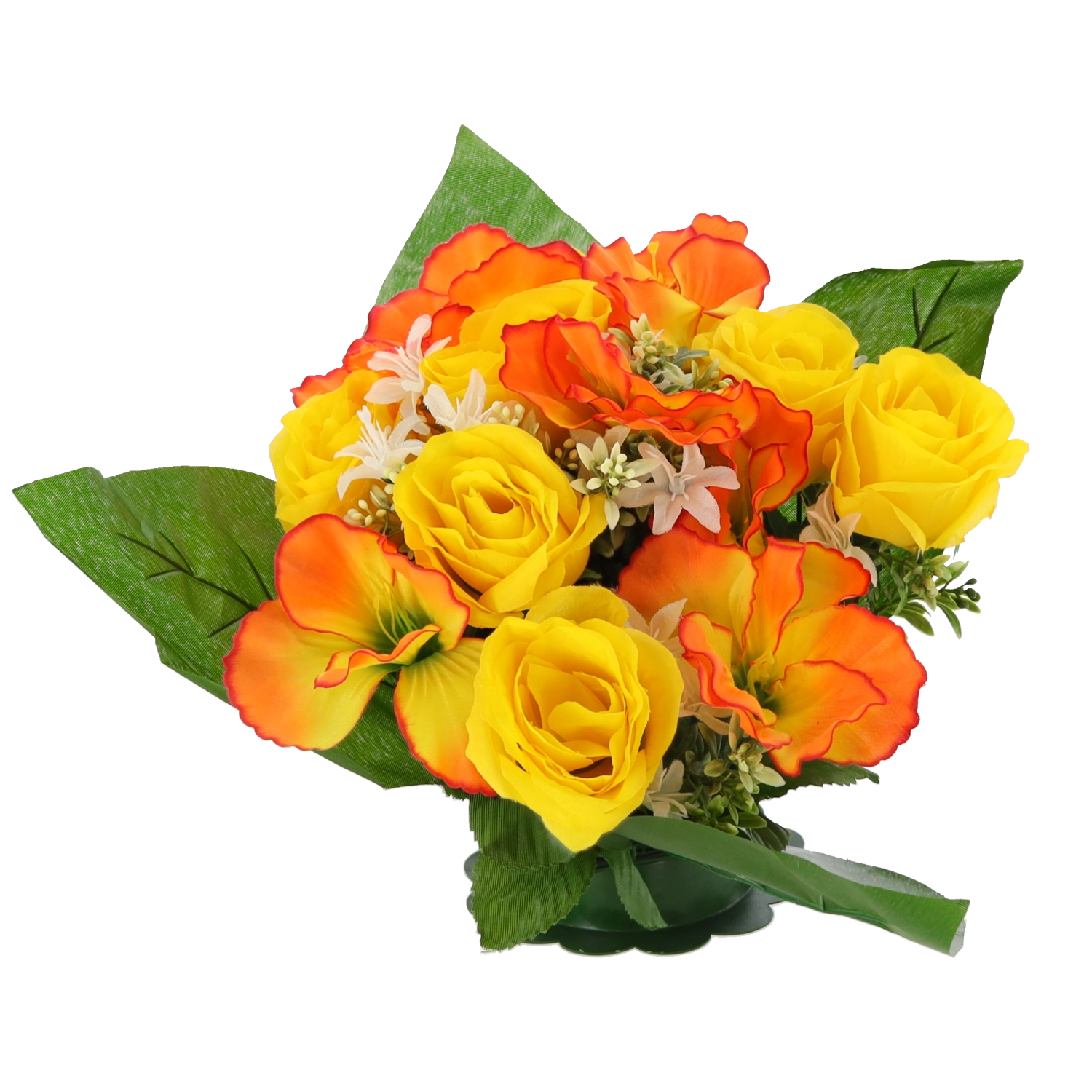 Unesite u dom ili ured svježinu cvijeća bez brige. Umjetni buket s ružama i hibiskusom ističe se vjernim izgledom latica i listova, stabilnim oblikom i zasićenim bojama koje ne blijede. Kompaktna veličina savršeno pristaje na stol, komodu, recepciju ili mjesto sjećanja.