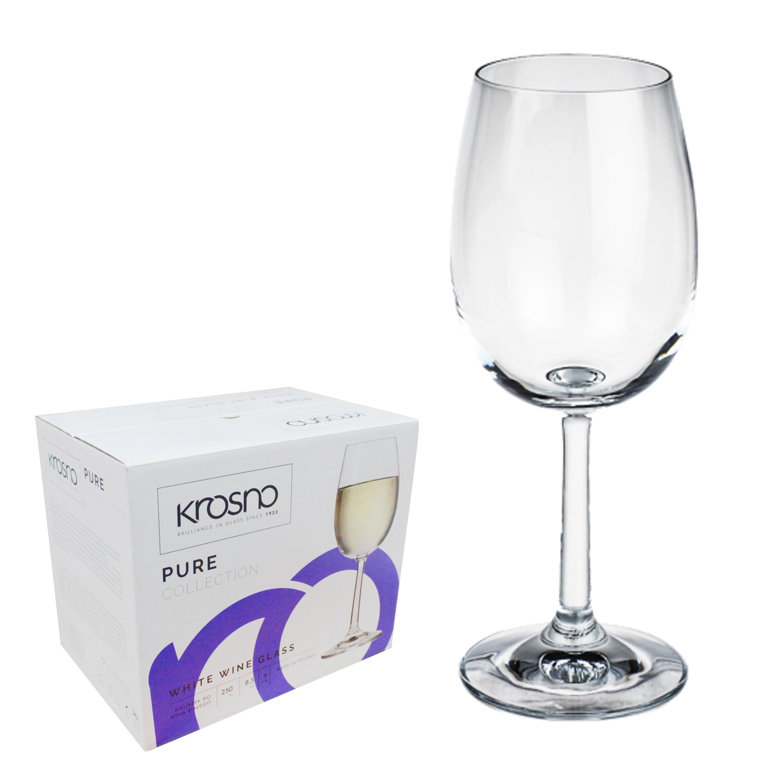 S ovim setom od šest čaša Krosno Pure podignut ćete posluživanje bijelog vina na višu razinu. Kristalno bistro staklo Crystalline odlikuje se sjajem, otpornošću na matiranje i preciznim linijama koje naglašavaju eleganciju svakog stola. Klasičan oblik s nježno suženom kupom omogućuje bolju koncentraciju arome, pa ćete svoje omiljeno bijelo vino doista uživati.