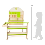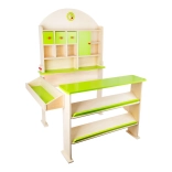 Podržite dječju kreativnost i socijalne vještine s ovim drvenim prodajnim štandom. Nudi mnogo prostora za pohranu i robustnu konstrukciju za stvaranje savršenog igrališnog okruženja.