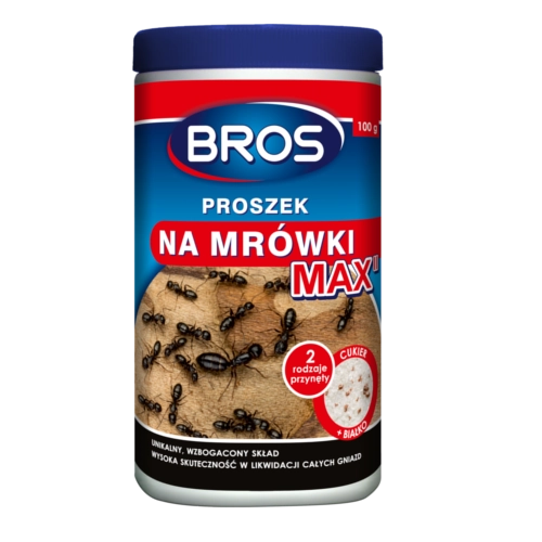 BROS prašak protiv mrava MAX 100 g profesionalno je rješenje za suzbijanje mrava u kućanstvima i njihovoj neposrednoj okolini. Dvostruka vrsta mamca (šećerna i bjelančevinska) povećava atraktivnost pripravka za različite faze i potrebe mravlje populacije, pa dolazi do konzumacije i prijenosa u gnijezdo. Time se učinkovito uništava ne samo vidljivi insekti, već i cijela kolonija uključujući gnijezdo.