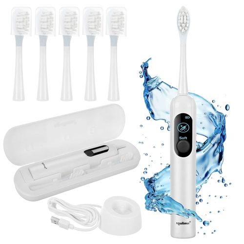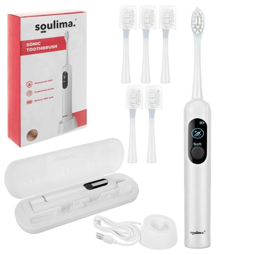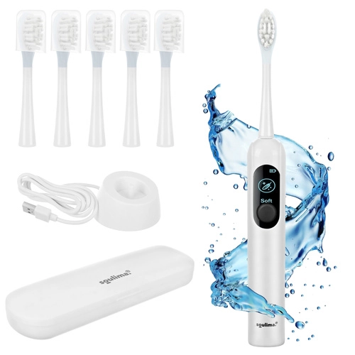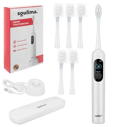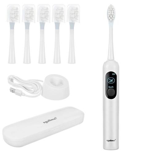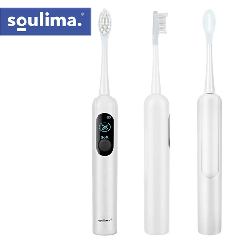 Otkrijte modernu njegu oralne higijene sa soničnom četkicom za zube SOULIMA s TFT zaslonom. Nudi do 90 000 vibracija u minuti za temeljito čišćenje, 6 režima uključujući nježni, izbjeljivanje i masažu, praktični Smart Timer 2 minute s impulsom svakih 30 s i tih rad oko 65 dB. Zahvaljujući vodootpornosti IPX7, induktivnom punjenju i bateriji 1200 mAh do 60 dana idealna je kod kuće i na putovanjima. U pakiranju dobivate 6 zamjenskih glava (soft i medium) i putnu futrolu.