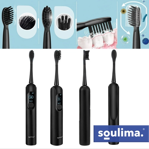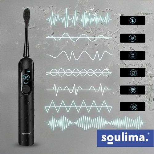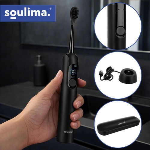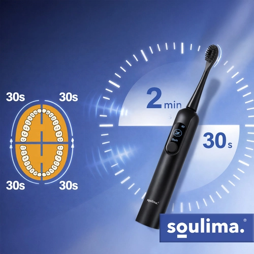 SOULIMA X800 je moderna sonična četkica za svakodnevnu oralnu higijenu koja čisti učinkovitije i nježnije od manuelne četkice. Visokofrekventne vibracije pomažu ukloniti plak i bakterije i s teško dostupnih mjesta, dok vas inteligentni timer usmjerava na ravnomjerno čišćenje cijele usne šupljine.
