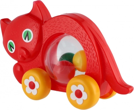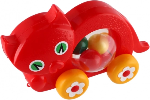 Vučna mačkica s pomičnim lopticama za najmlađe. Izdržljiva plastika, dimenzije 27×16×10 cm, prikladno od 12 mjeseci. Zabava i razvoj motorike pri prvim koracima.