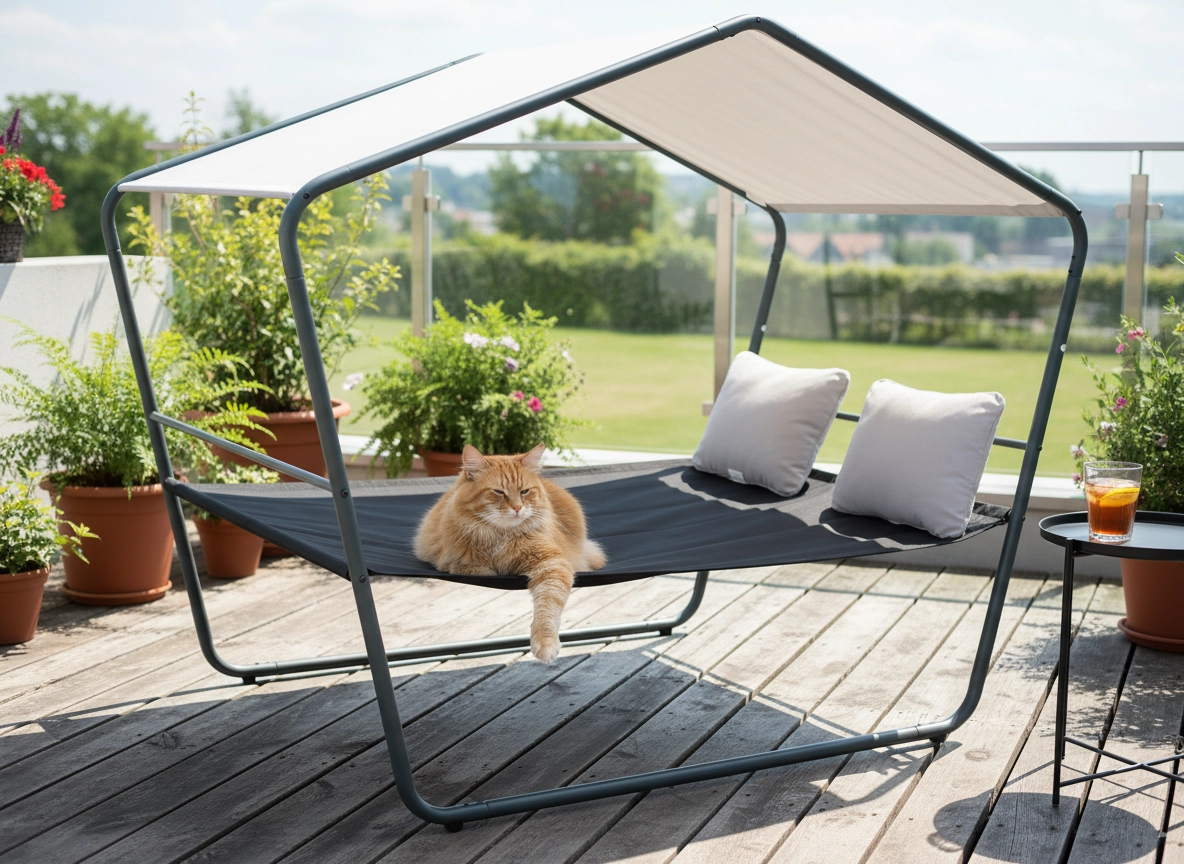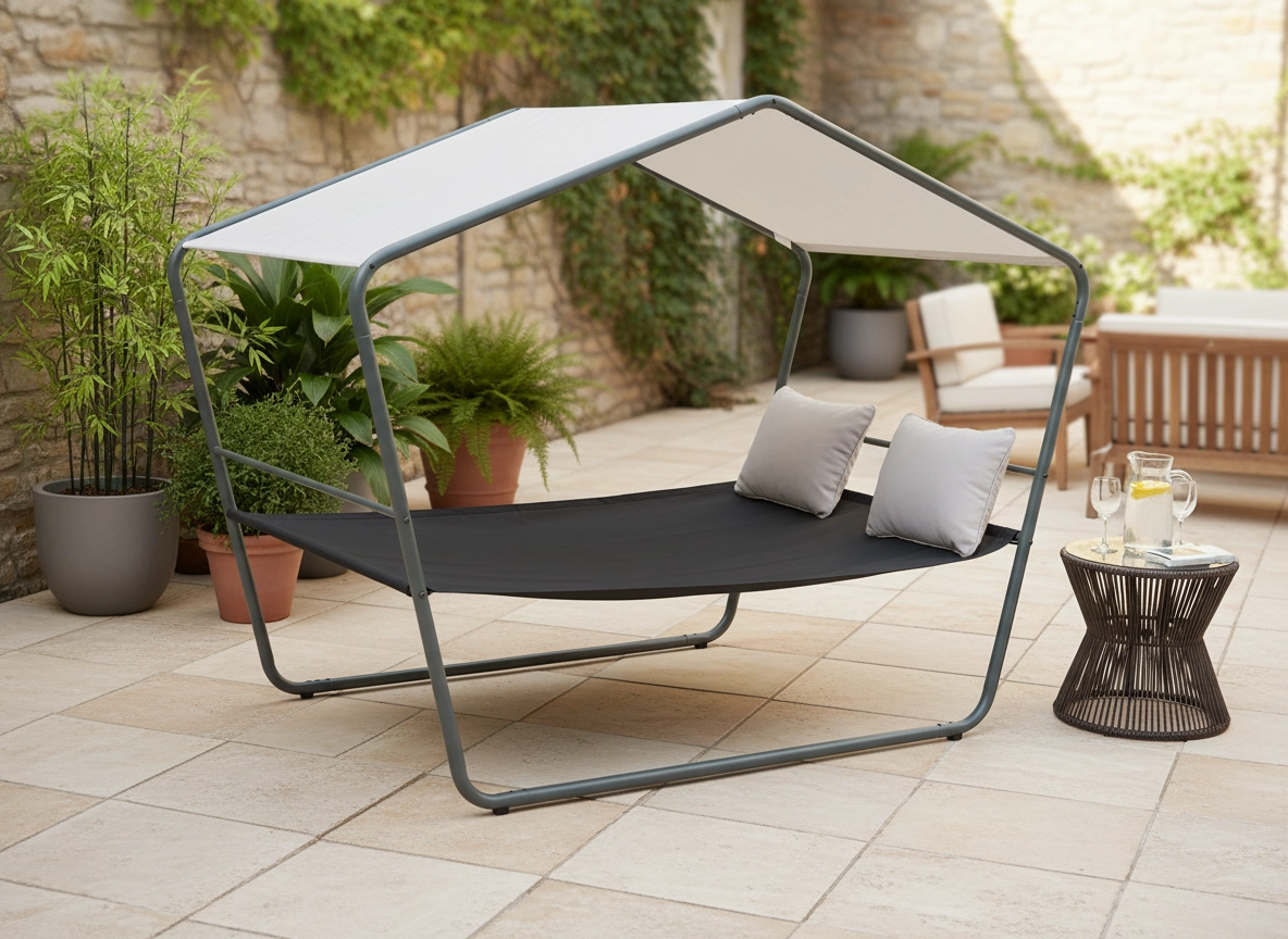 Ova dvostruka vrtna ležaljka s nadstrešnicom pretvorit će vašu terasu u oazu mira. Stabilna metalna konstrukcija, prozračna mrežica Textilene i nagibni krov osigurat će udobnost tijekom vrućih dana i nakon kiše. Zahvaljujući bezvremenskom izgledu uklapa se u moderne i prirodne eksterijere.