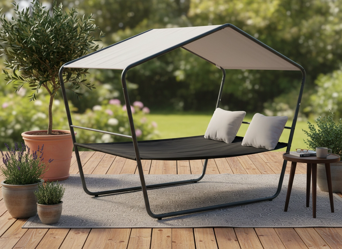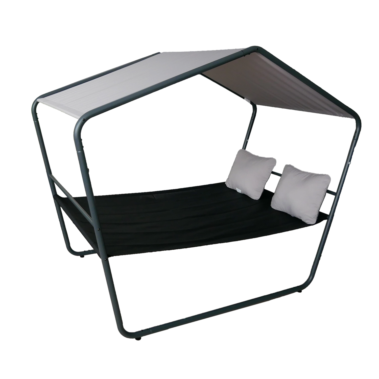 Uživajte u opuštanju udvoje na elegantnoj vrtnoj ležaljci s nadstrešnicom. Nudi prostranu površinu za 2 osobe, vodoodbojnu nadstrešnicu i izdržljivu mrežicu Textilene s UV zaštitom. U kompletu su i udobni jastuci za maksimalnu udobnost u vrtu, na terasi ili na trijemu.