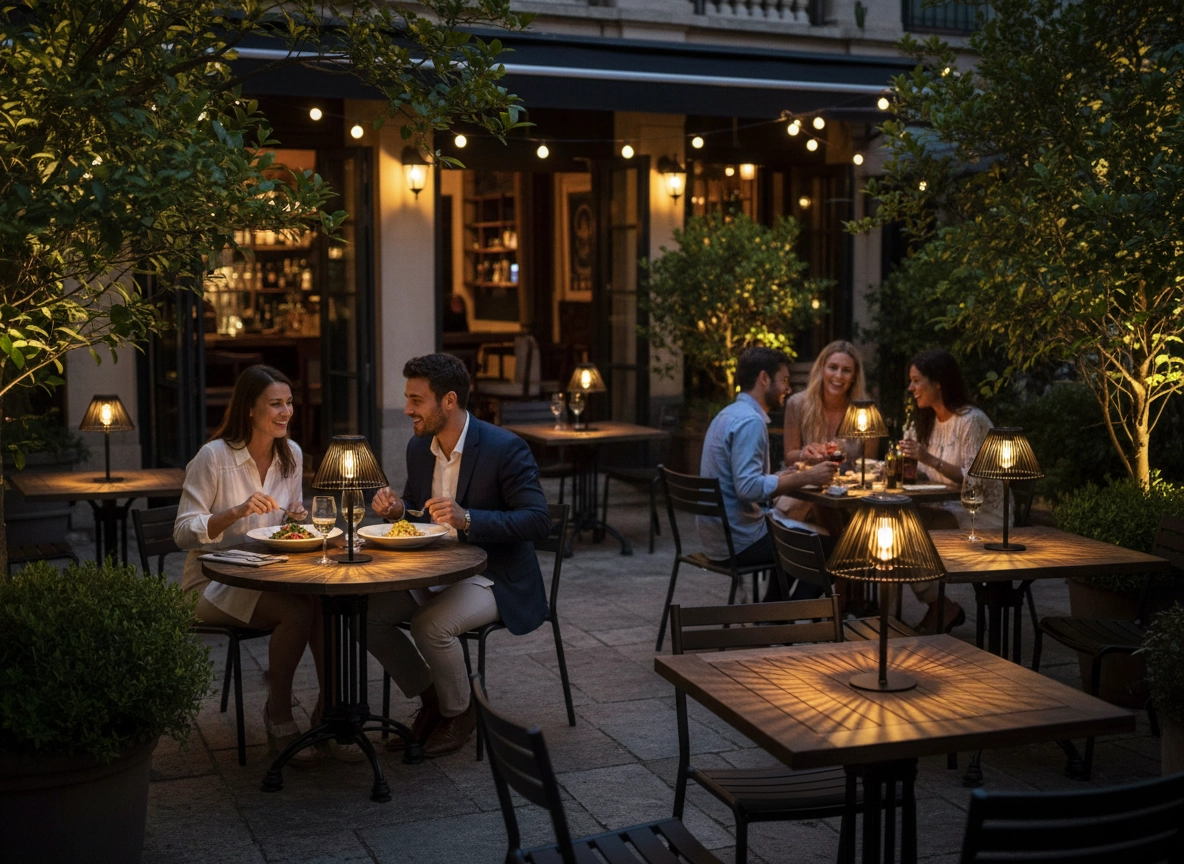 Kompaktna visina i stabilna baza omogućuju lako premještanje između stolova i zona – idealno za vrtne večere bez zasljepljivanja.