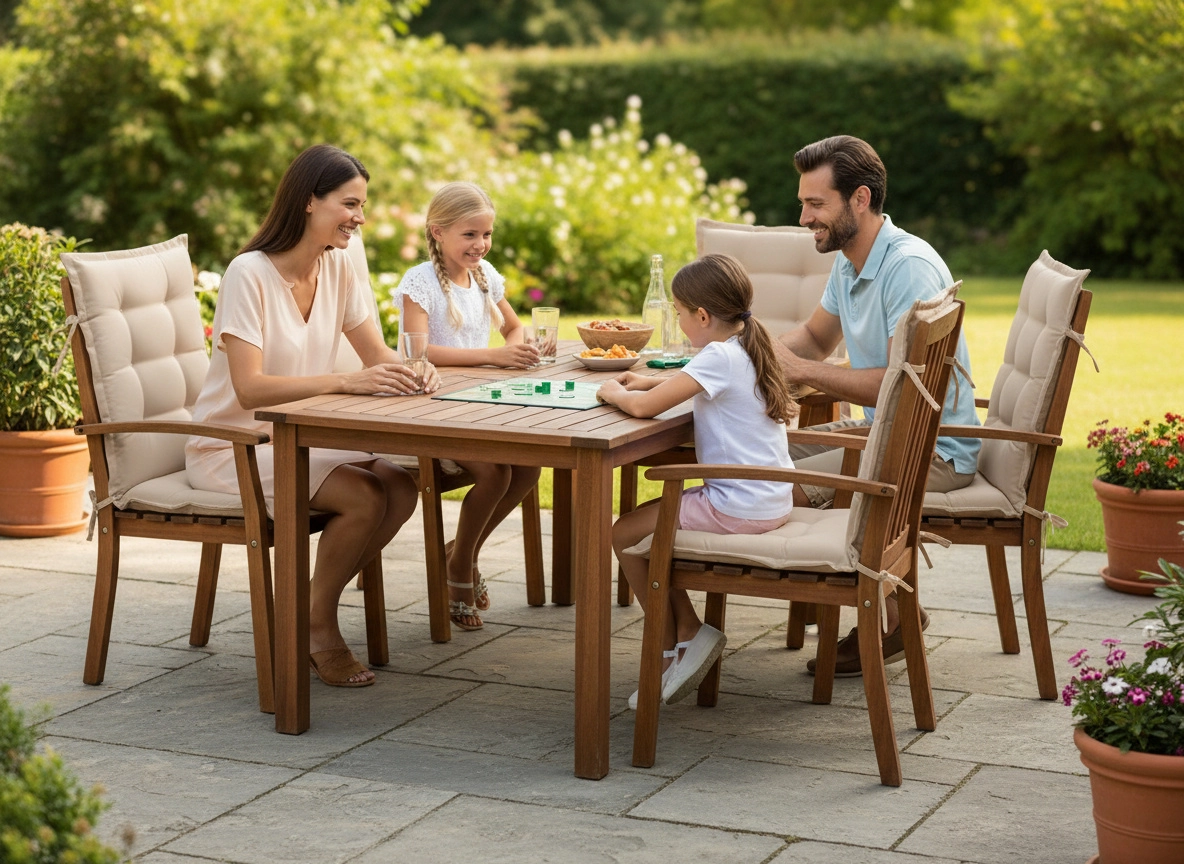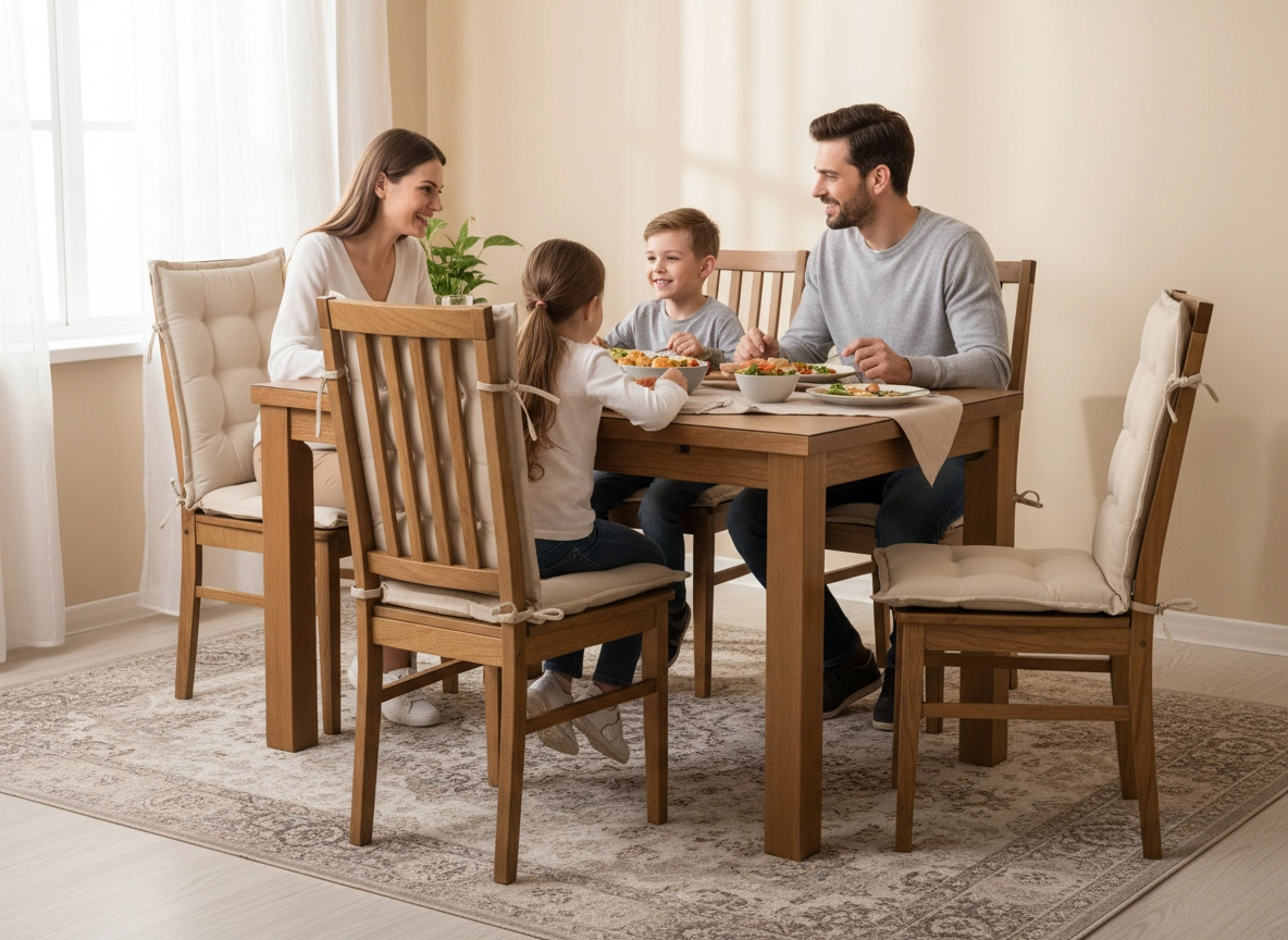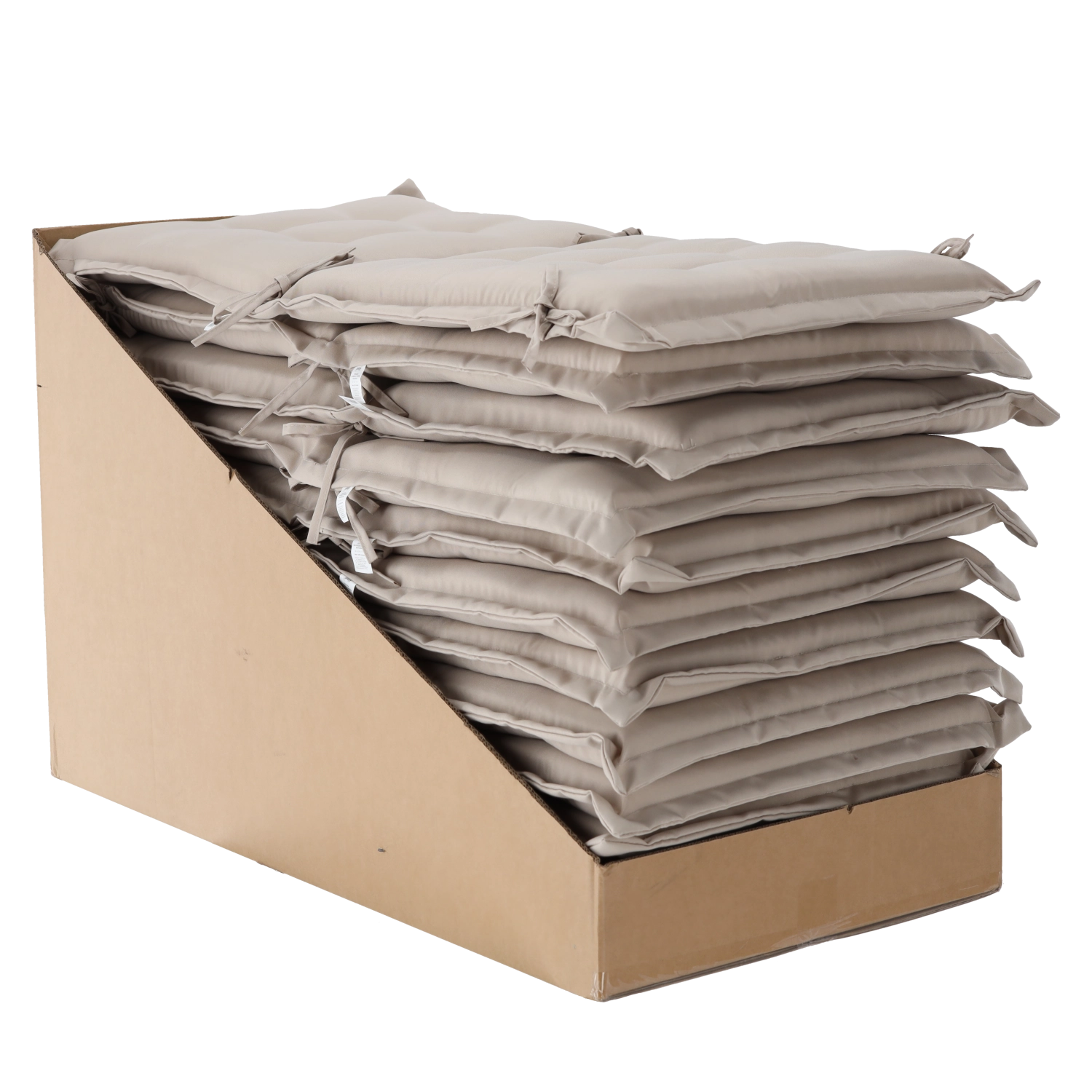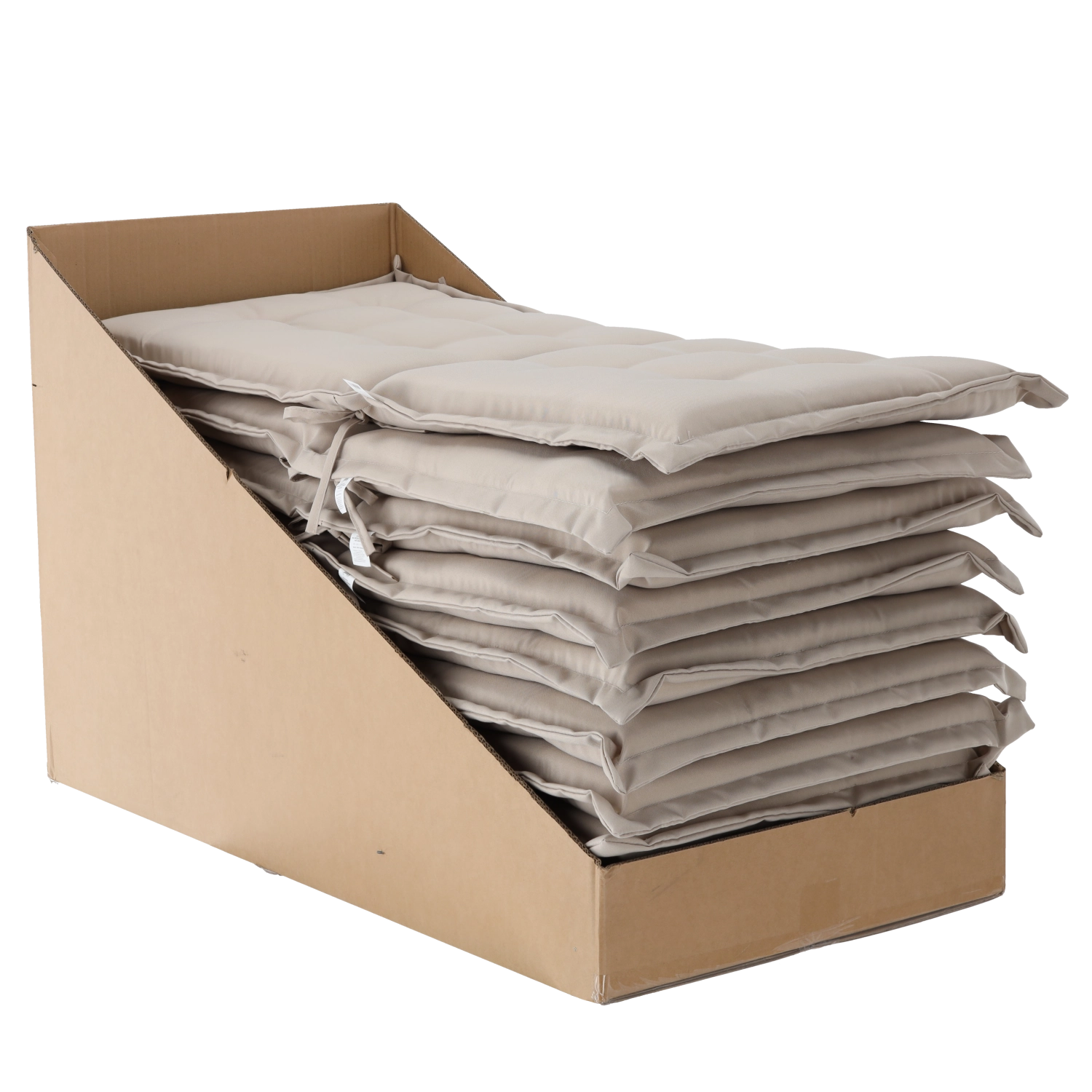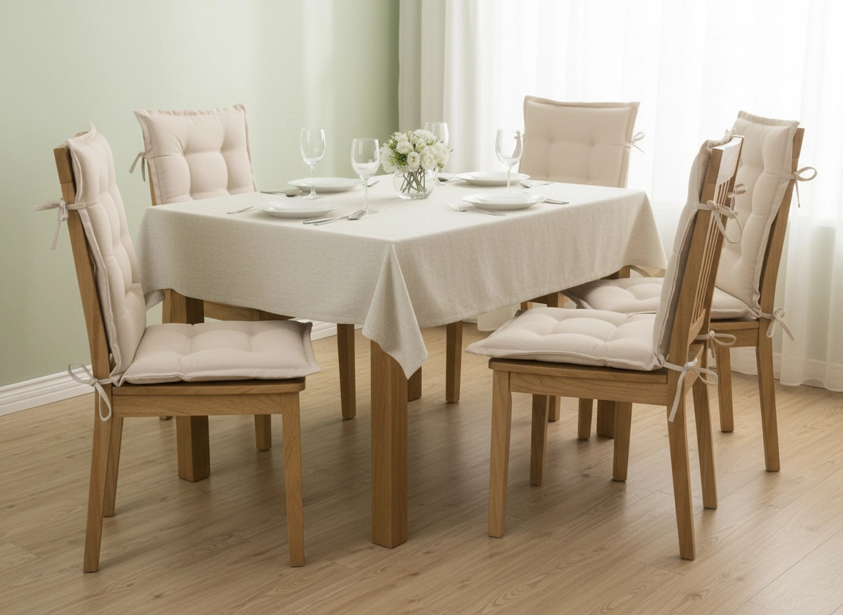 Zahvaljujući promišljenom prošivanju 6× u naslonu i 4× na sjedalu, ispuna zadržava ravnomjerno raspoređen volumen i elegantan izgled. Četiri vezice na rubovima omogućuju brzo i čvrsto vezanje za većinu stolica, pa jastuk ostaje točno tamo gdje treba.