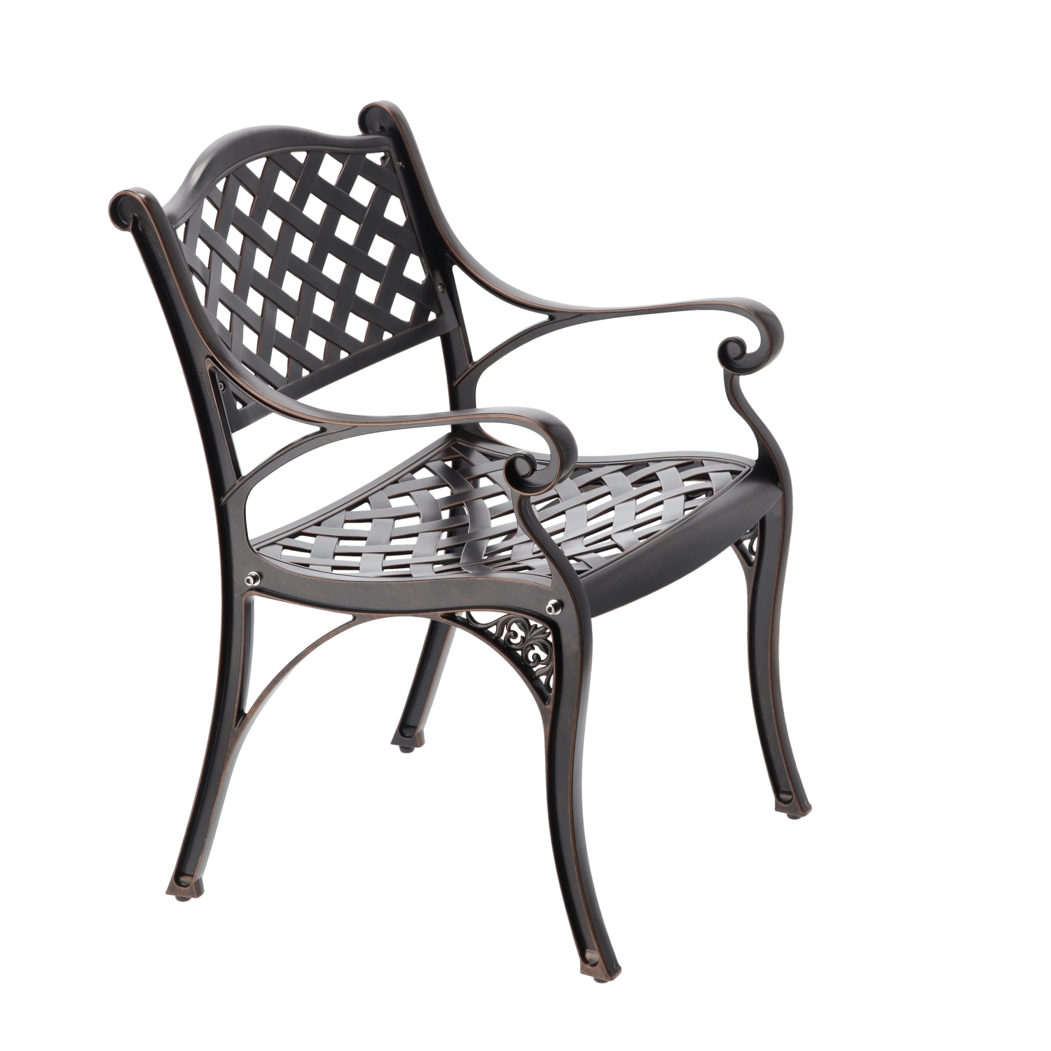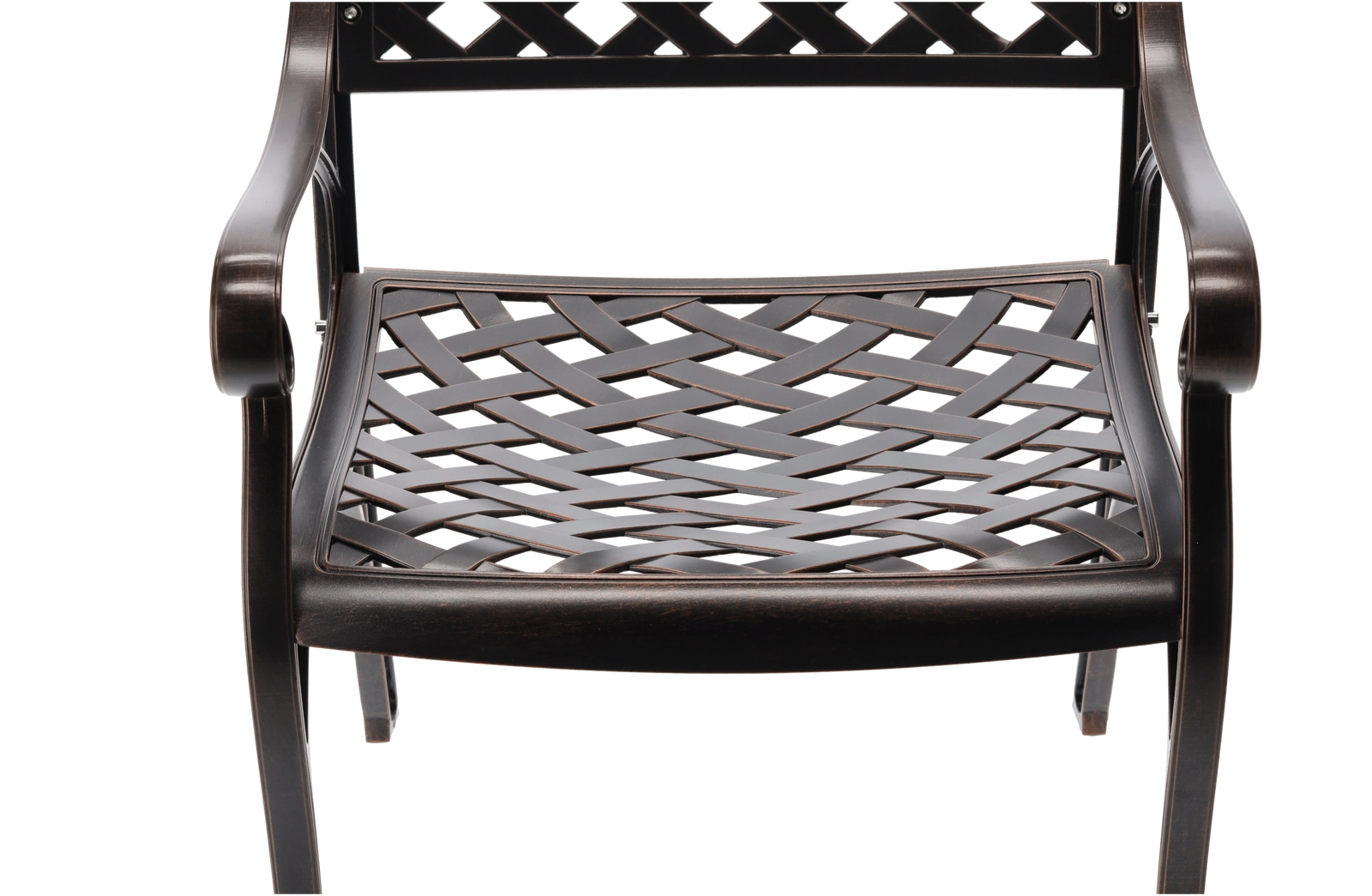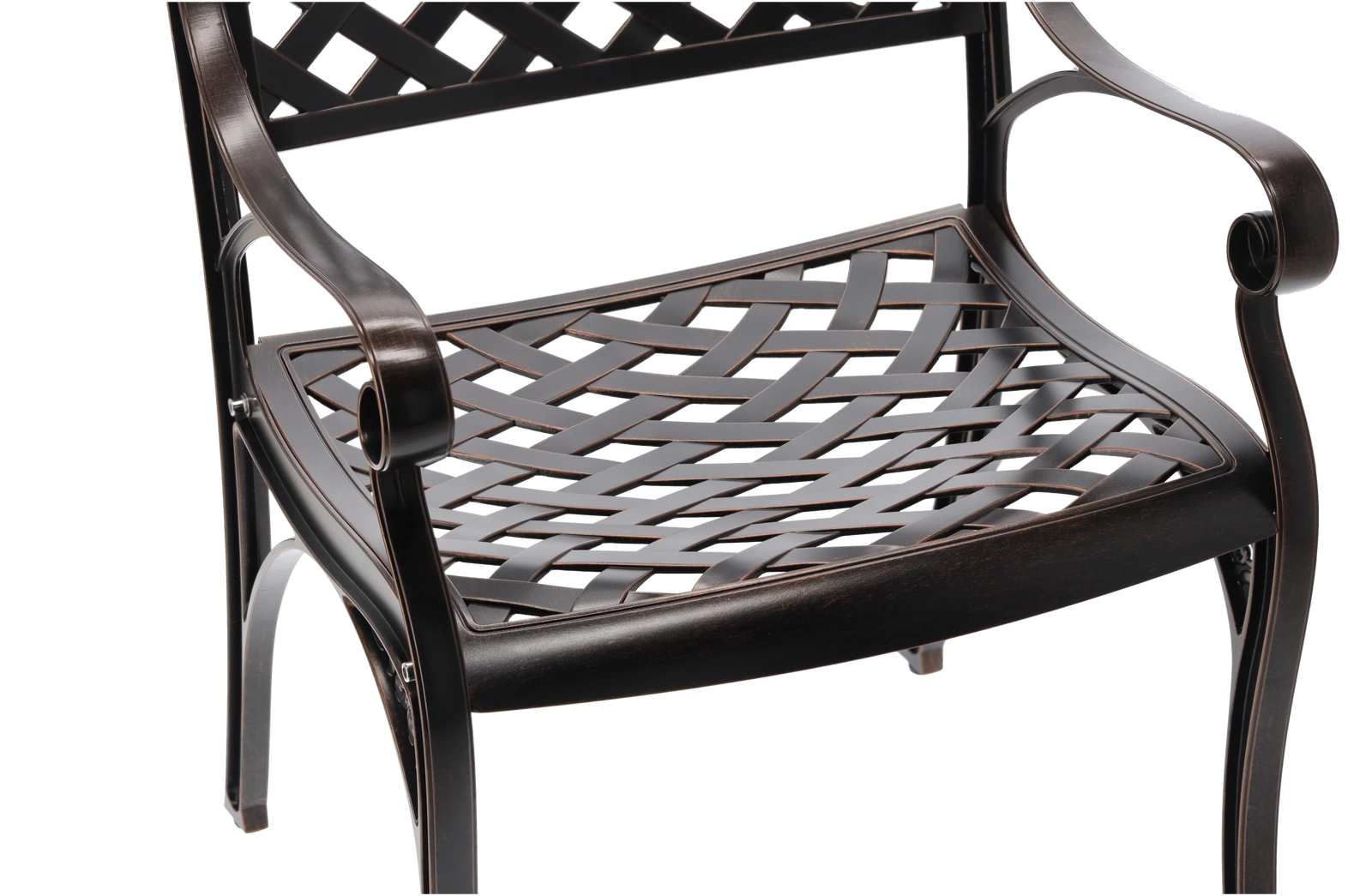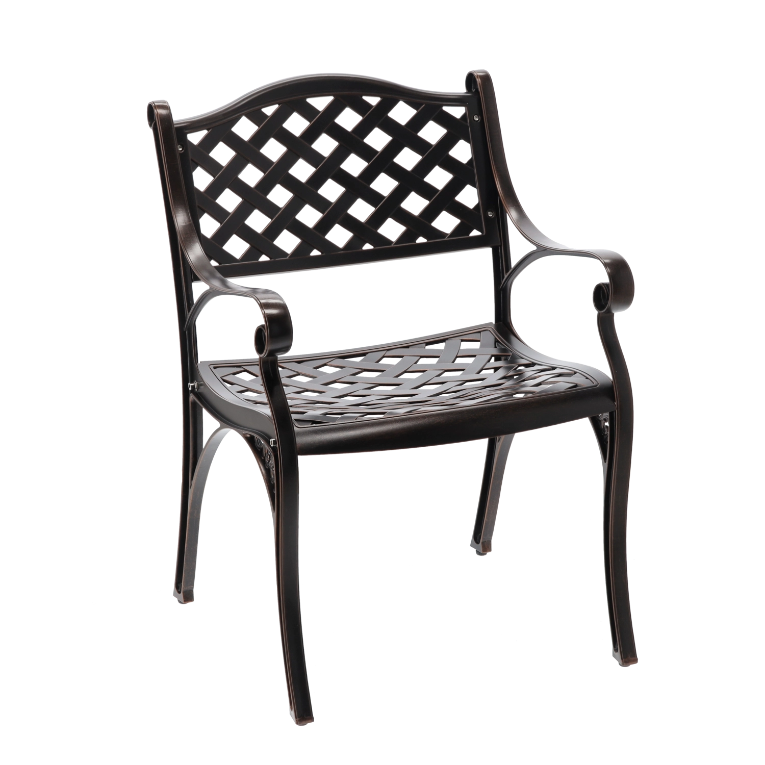 Elegantna vrtna stolica MONDRICH u nijansi antik brončane spaja klasičan izgled s modernom izdržljivošću. Izrađena je od punih aluminijskih odljevaka i premazana prahastim lakom za zaštitu od vremenskih utjecaja. Zahvaljujući niskoj težini, stabilnoj konstrukciji i udobnim naslonima za ruke, idealna je za terasu, balkon, vrt i komercijalne prostore.