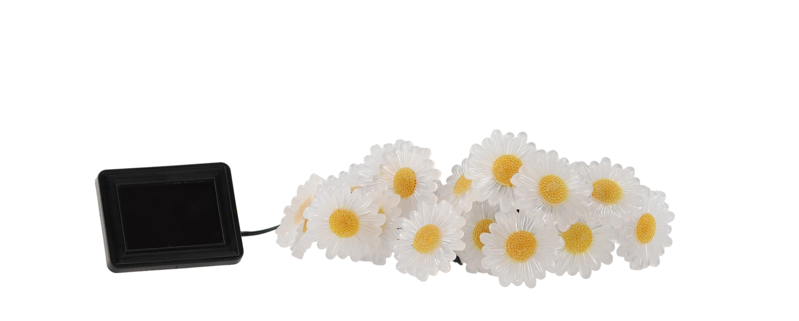 Stvorite ugodnu atmosferu s dekorativnom svjetlosnom girlandom u obliku tratinčica. Solarno napajanje štedi energiju i omogućuje bežično postavljanje bilo gdje u vrtu, na pergoli ili balkonu. Toplo bijelo svjetlo naglašava večernja druženja i svečane dekoracije.