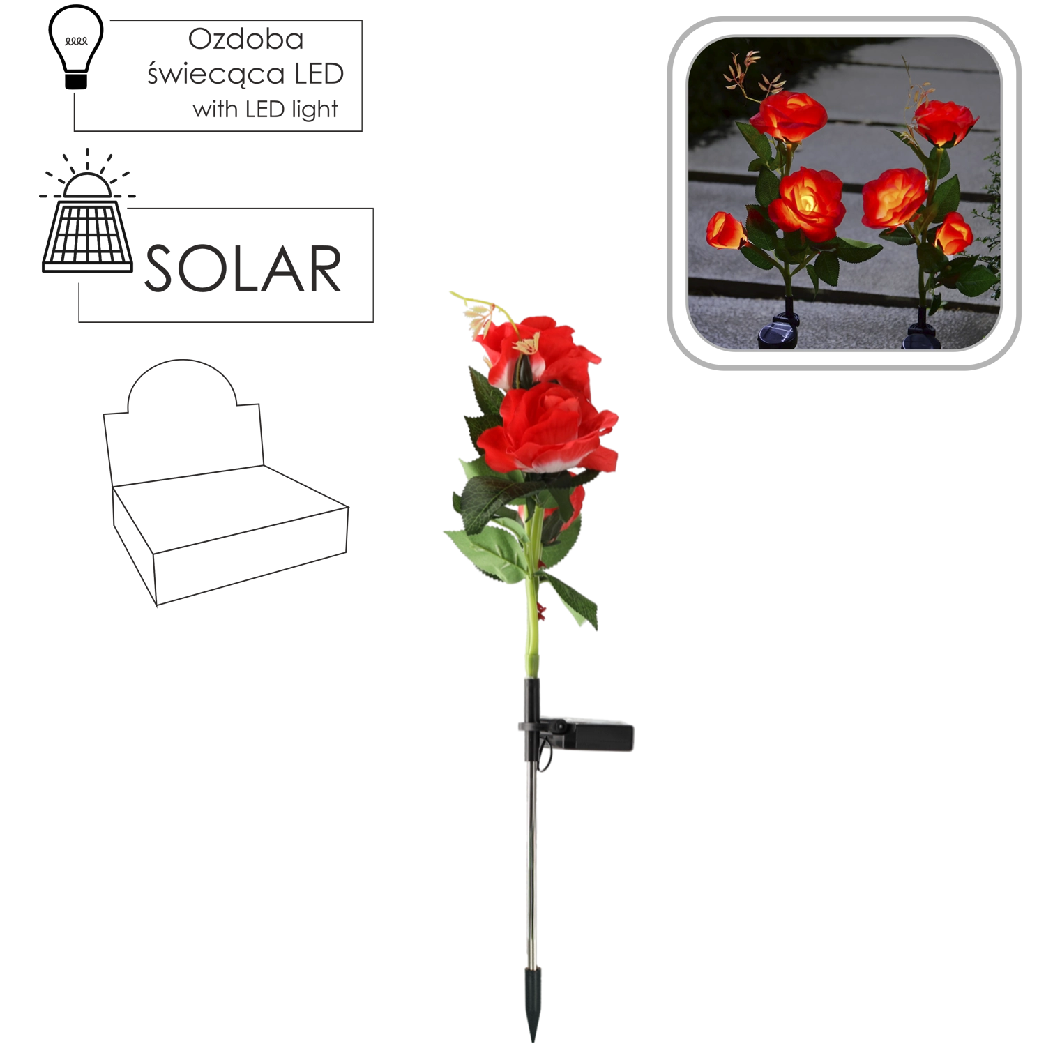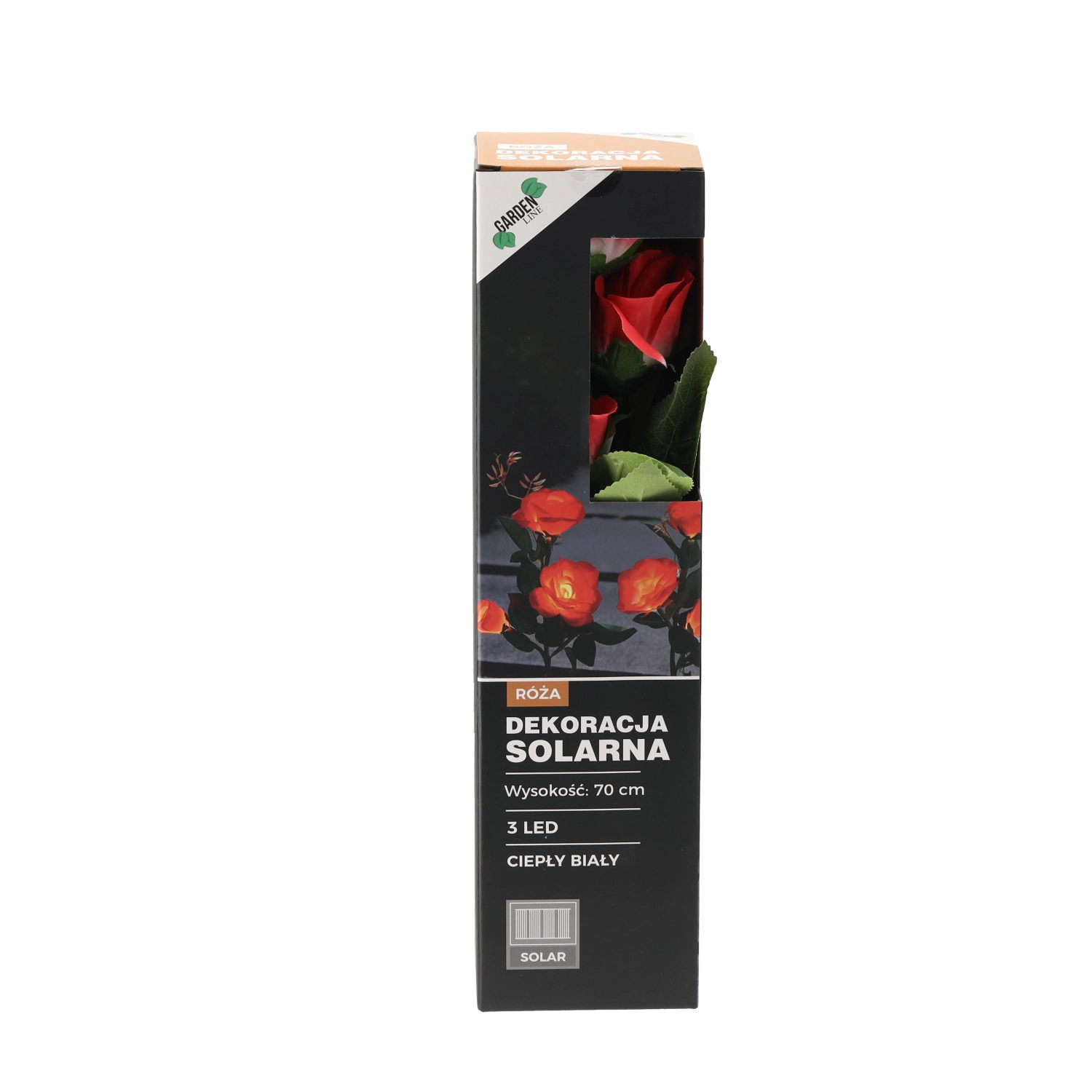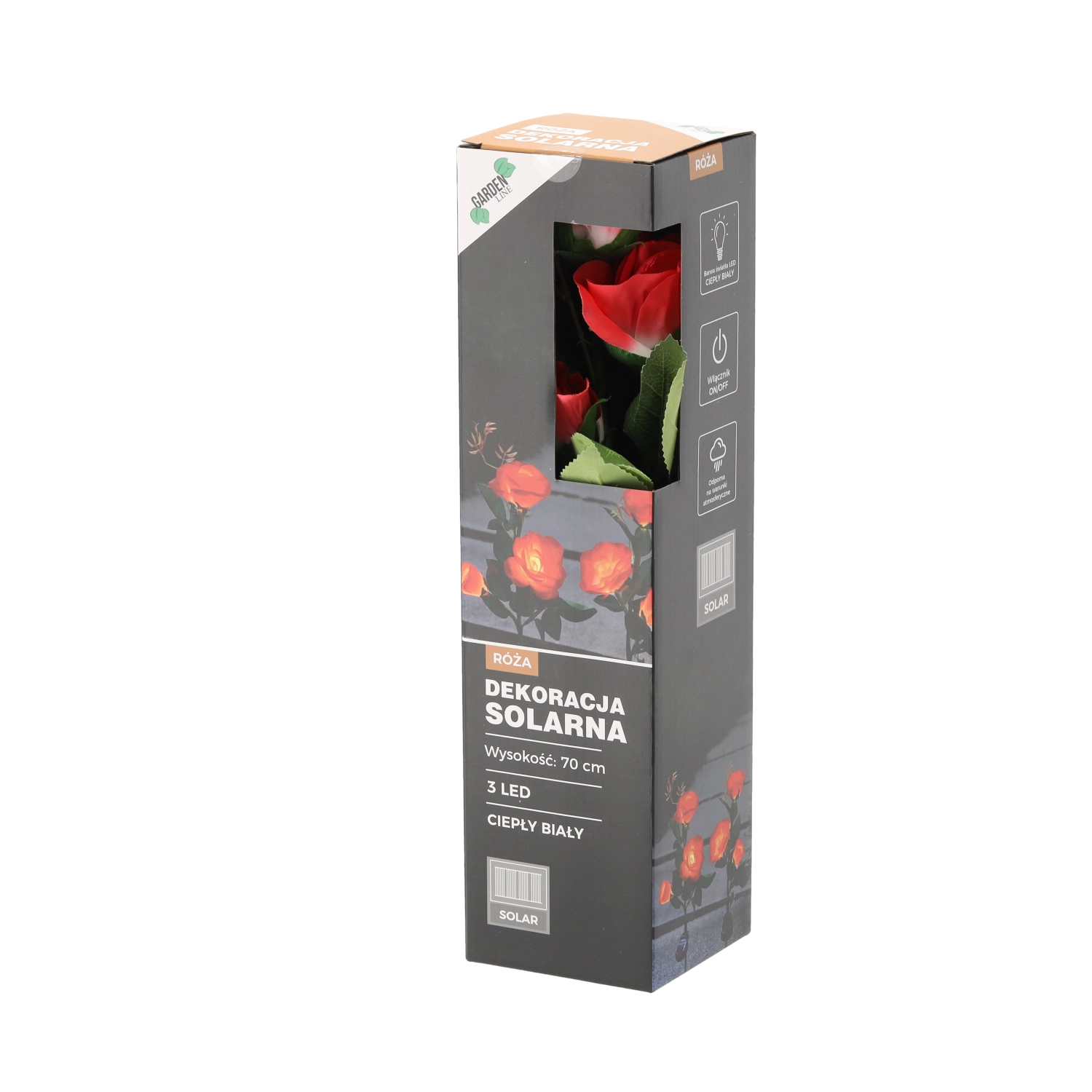 Dekorativna solarna lampa u obliku ruže visine 70 cm nježno će osvijetliti vaš vrt. Nudi 3 cvijeta s toplo bijelom bojom svjetla, automatsko punjenje sunca i štedljiv rad zahvaljujući LED tehnologiji. Zahvaljujući stupnju zaštite IP44 pogodna je za vanjsku uporabu tijekom cijele sezone.