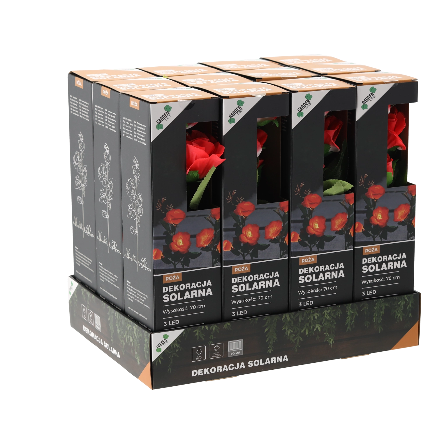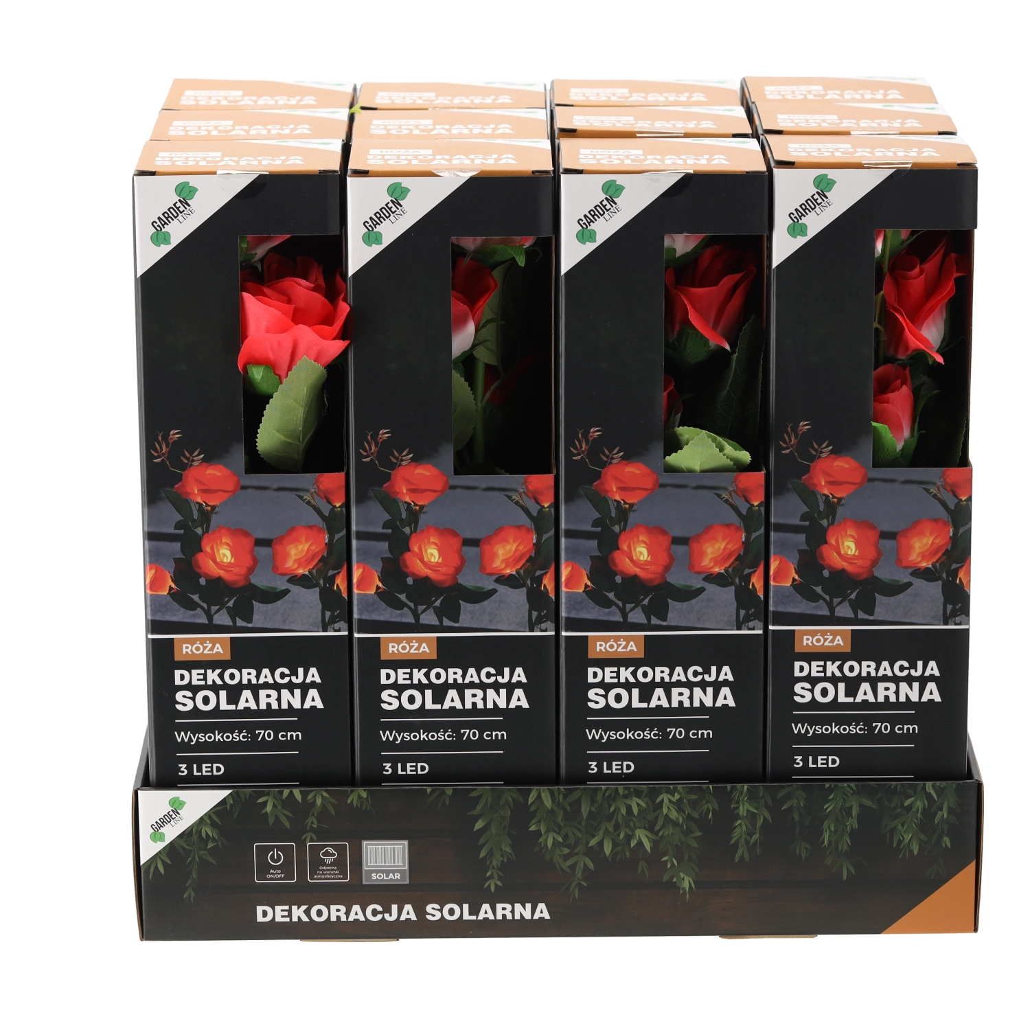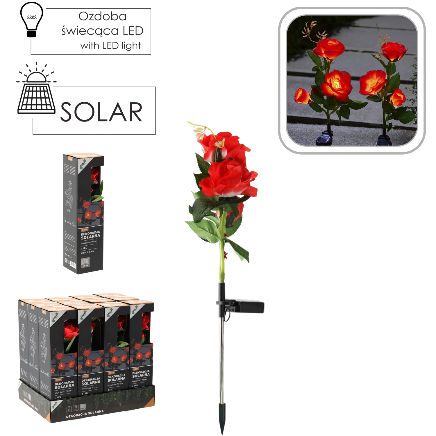 Dekorativna solarna lampa u obliku ruže visine 70 cm nježno će osvijetliti vaš vrt. Nudi 3 cvijeta s toplo bijelom bojom svjetla, automatsko punjenje sunca i štedljiv rad zahvaljujući LED tehnologiji. Zahvaljujući stupnju zaštite IP44 pogodna je za vanjsku uporabu tijekom cijele sezone.