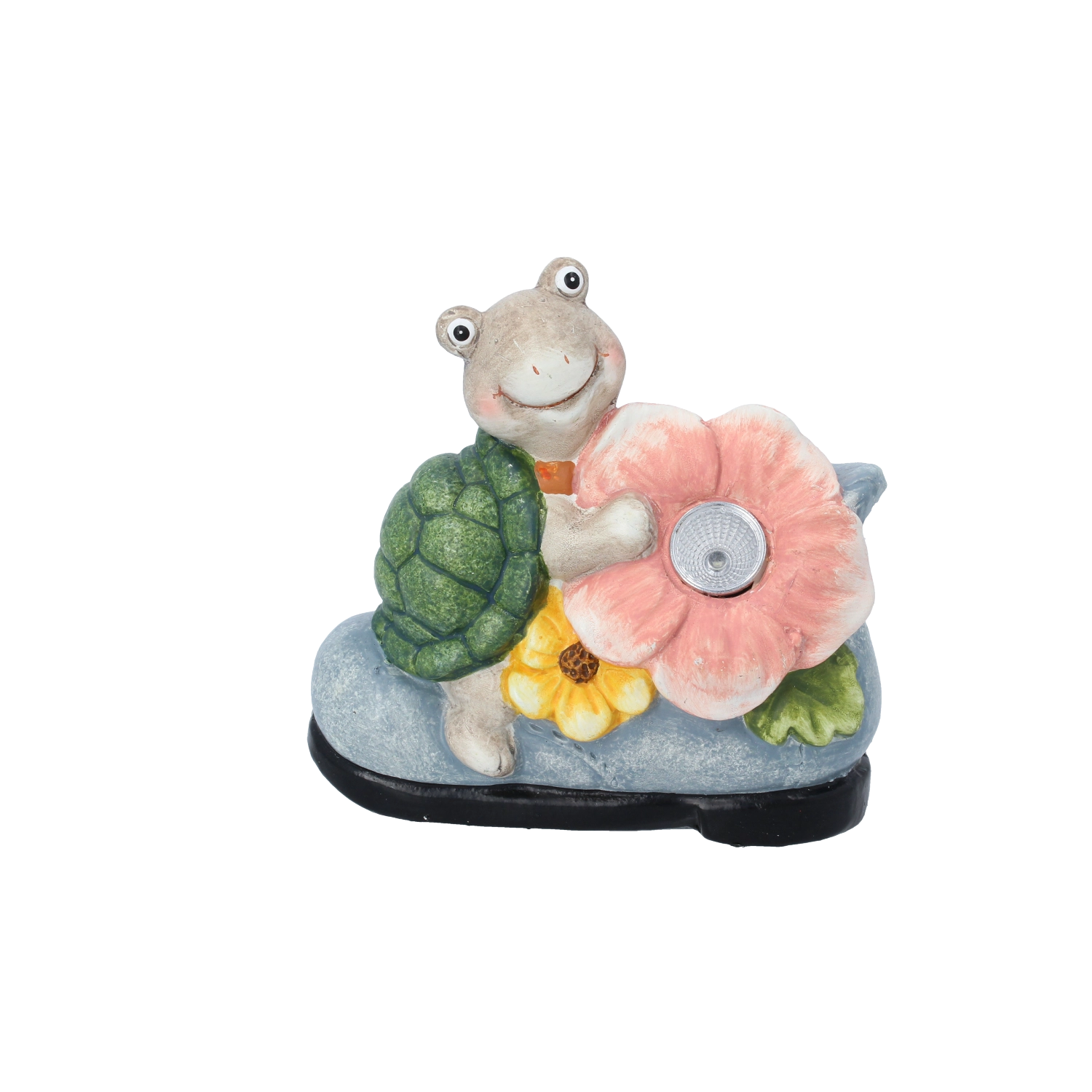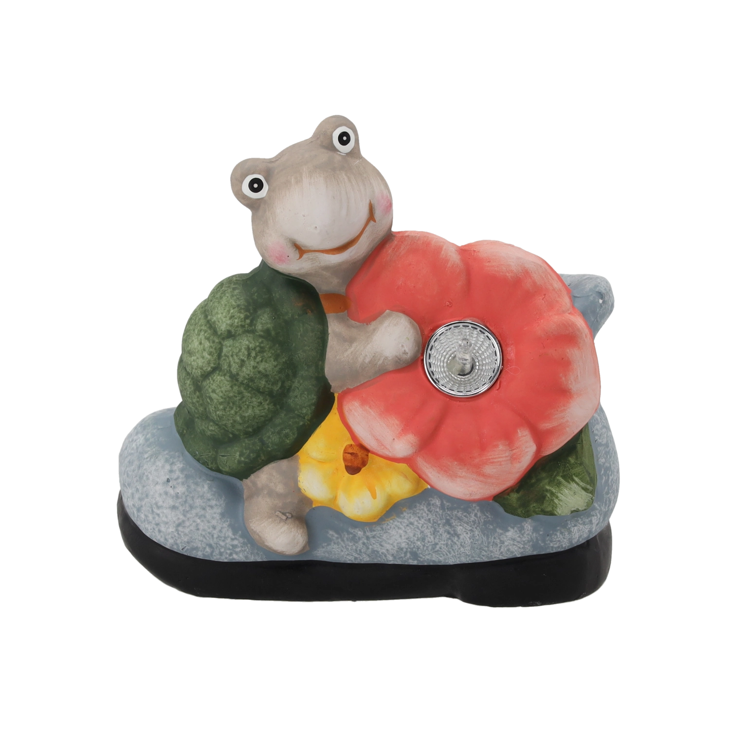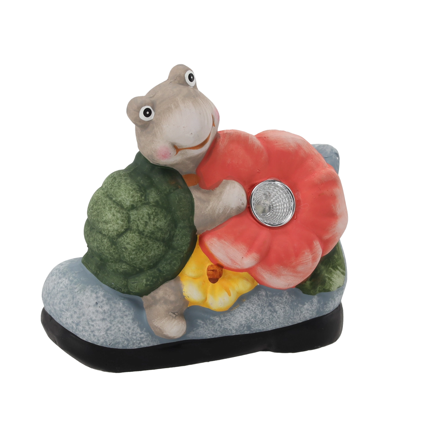 Vrtna dekoracija kornjača s cvijetom i LED svjetlom