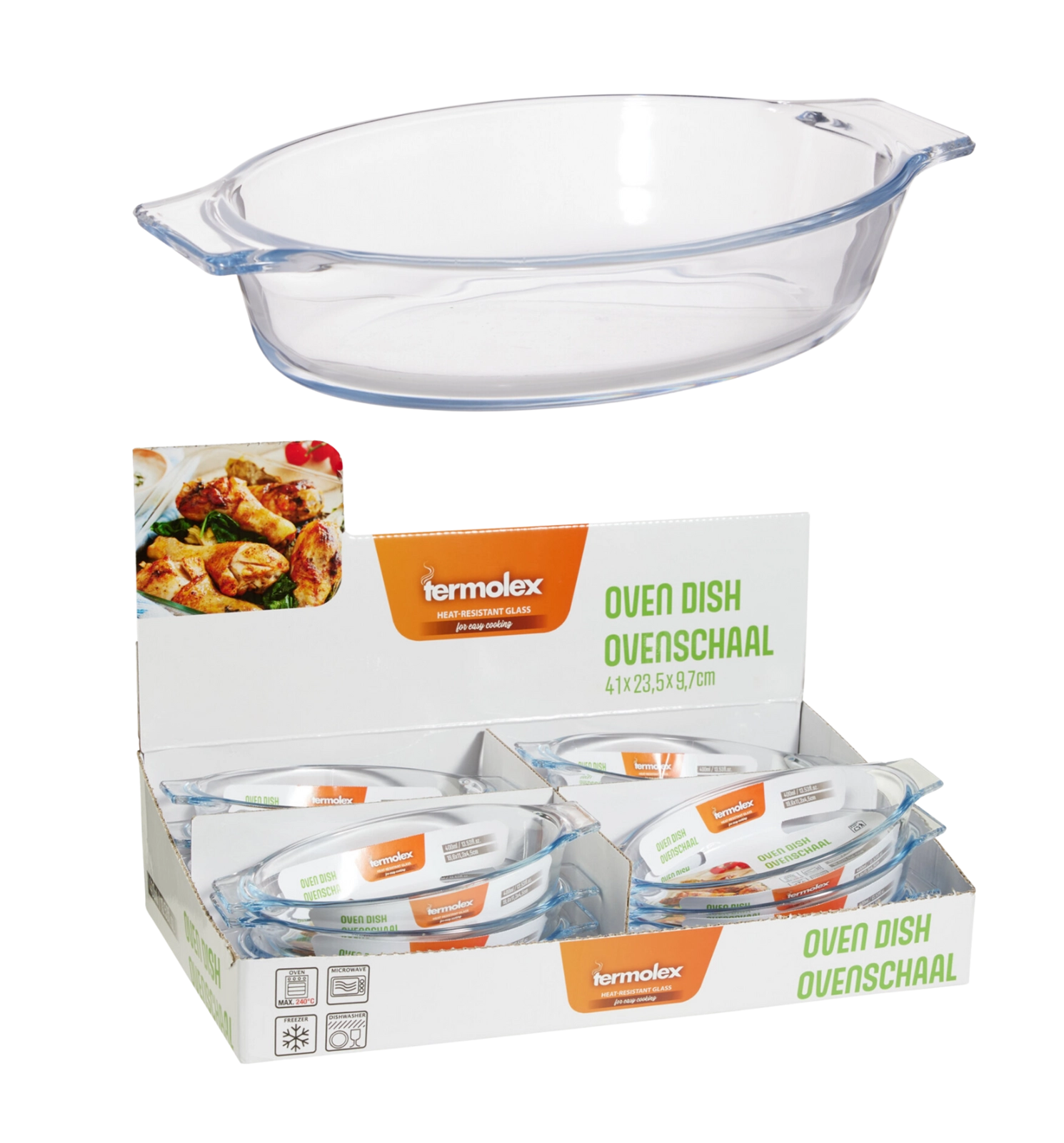 Visokokvalitetno borosilikatno staklo pruža odličnu toplinsku otpornost i dug vijek trajanja. Posuda je kompatibilna s pećnicom i mikrovalnom pećnicom, namirnice se u njoj mogu sigurno čuvati u hladnjaku i zamrzivaču, a nakon upotrebe lako se pere u perilici posuđa. Ergonomske ručke osiguravaju udobno i sigurno prenošenje, čak i kada je posuda vruća.