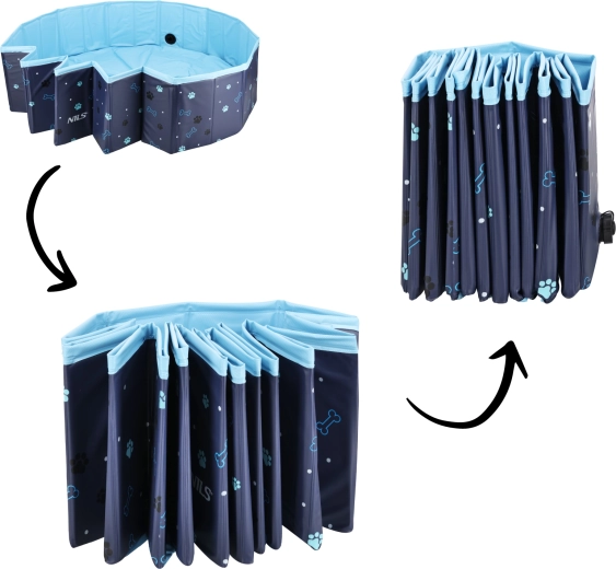 Razveselite svog ljubimca i pružite mu trenutno osvježenje u vrućim danima u sklopivom bazenu NILS promjera 120 cm i visine 30 cm. Zahvaljujući čvrstoj konstrukciji od PVC-a i MDF panela, protukliznom dnu i praktičnom ventilu za pražnjenje, bazen je siguran, izdržljiv i jednostavan za upotrebu. Bez potrebe za napuhavanjem – samo ga rasklopite, napunite i zabava može početi.