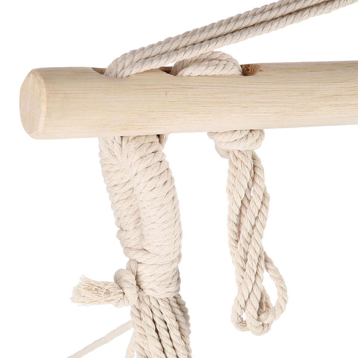 Snažna pamučna užad s robusnom karabinom i sigurnosnim čvorovima pružaju stabilno pričvršćenje i mirno, glatko ljuljanje.
