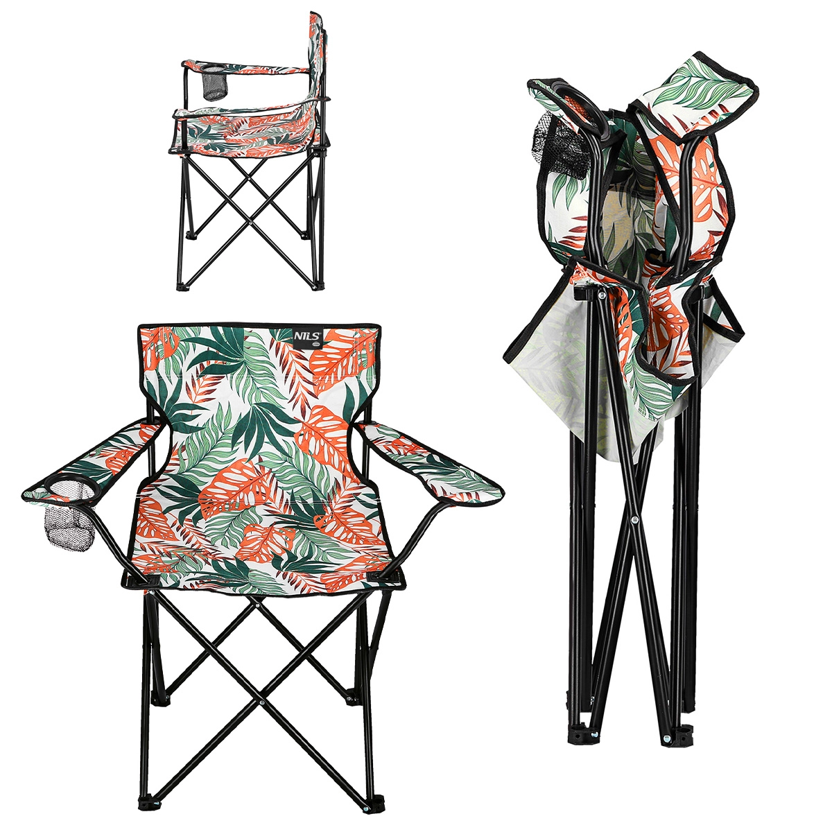 Lagana i stabilna sklopiva stolica s tropskim otiskom idealna je za vodu, ribolov i festivale. Nudi izdržljivu čeličnu konstrukciju, čvrstu tkaninu 600D, podesive naslone za ruke i praktičan držač napitka. Zahvaljujući lakom sklapanju i maloj težini, možete je udobno ponijeti bilo kamo.