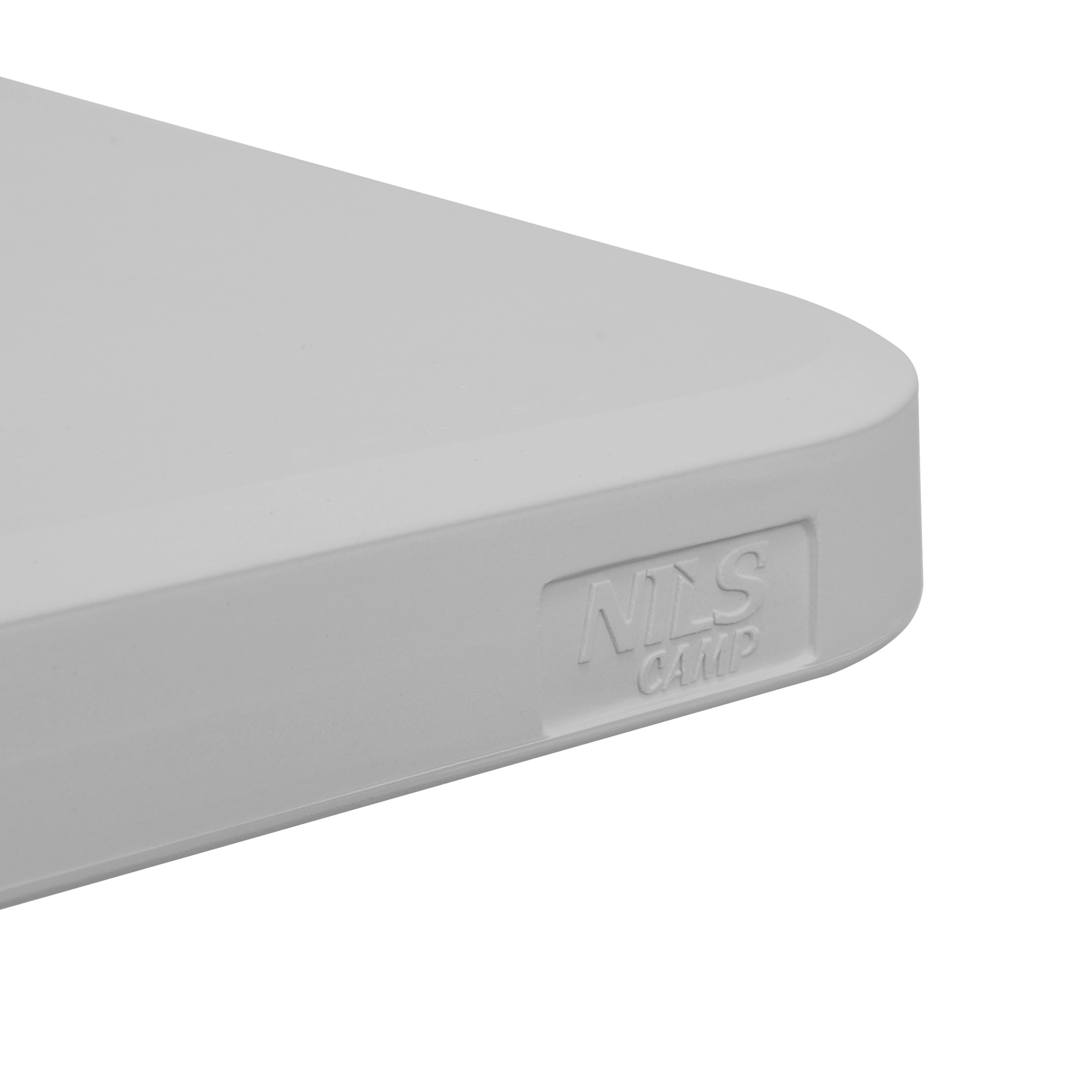 Stol NILS Camp NC1618 dizajniran je za univerzalnu upotrebu na otvorenom i u zatvorenom. Izdržljiva PVC ploča se lako održava, ne upija mrlje i dobro podnosi vremenske uvjete. Ojačani čelični okvir osigurava stabilnost i pri većem opterećenju, a zahvaljujući nosivosti od 150 kg odlično služi za posluživanje, rad ili obiteljska slavlja.