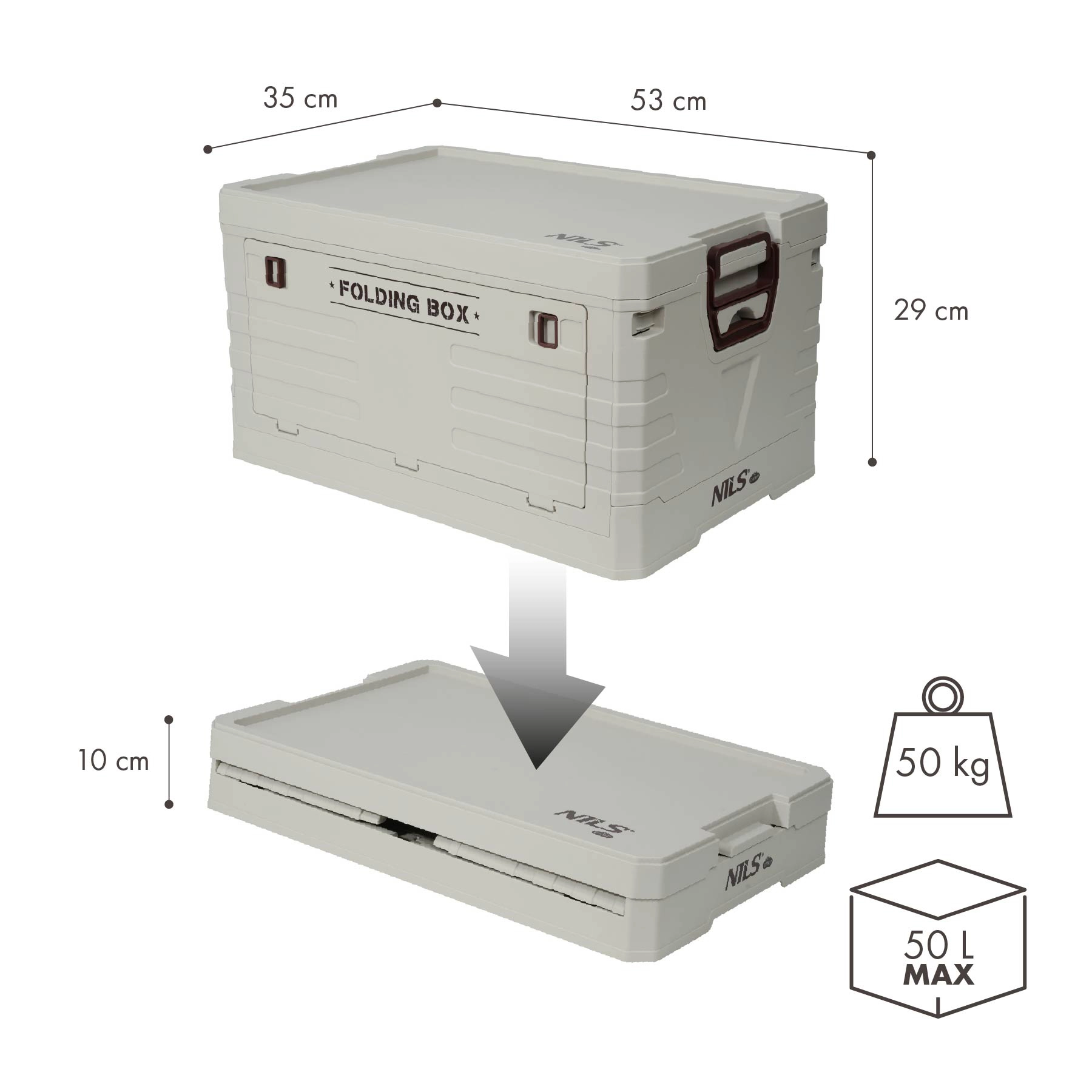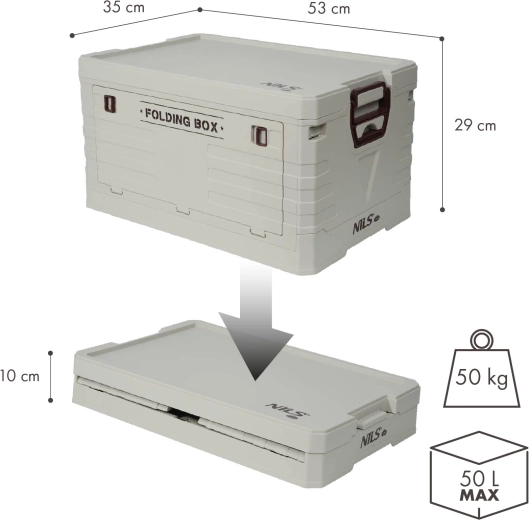 Sklopiva spremna kutija s poklopcem NILS Camp idealna je za auto, kampiranje, radionicu i kućanstvo. Nudi veliku zapreminu od 50 l, izdržljivu PP izradu i brzo sklapanje na visinu od samo 10 cm radi uštede prostora. Zahvaljujući poklopcu na klik i bočnim ručkama sadržaj je siguran, a rukovanje jednostavno.