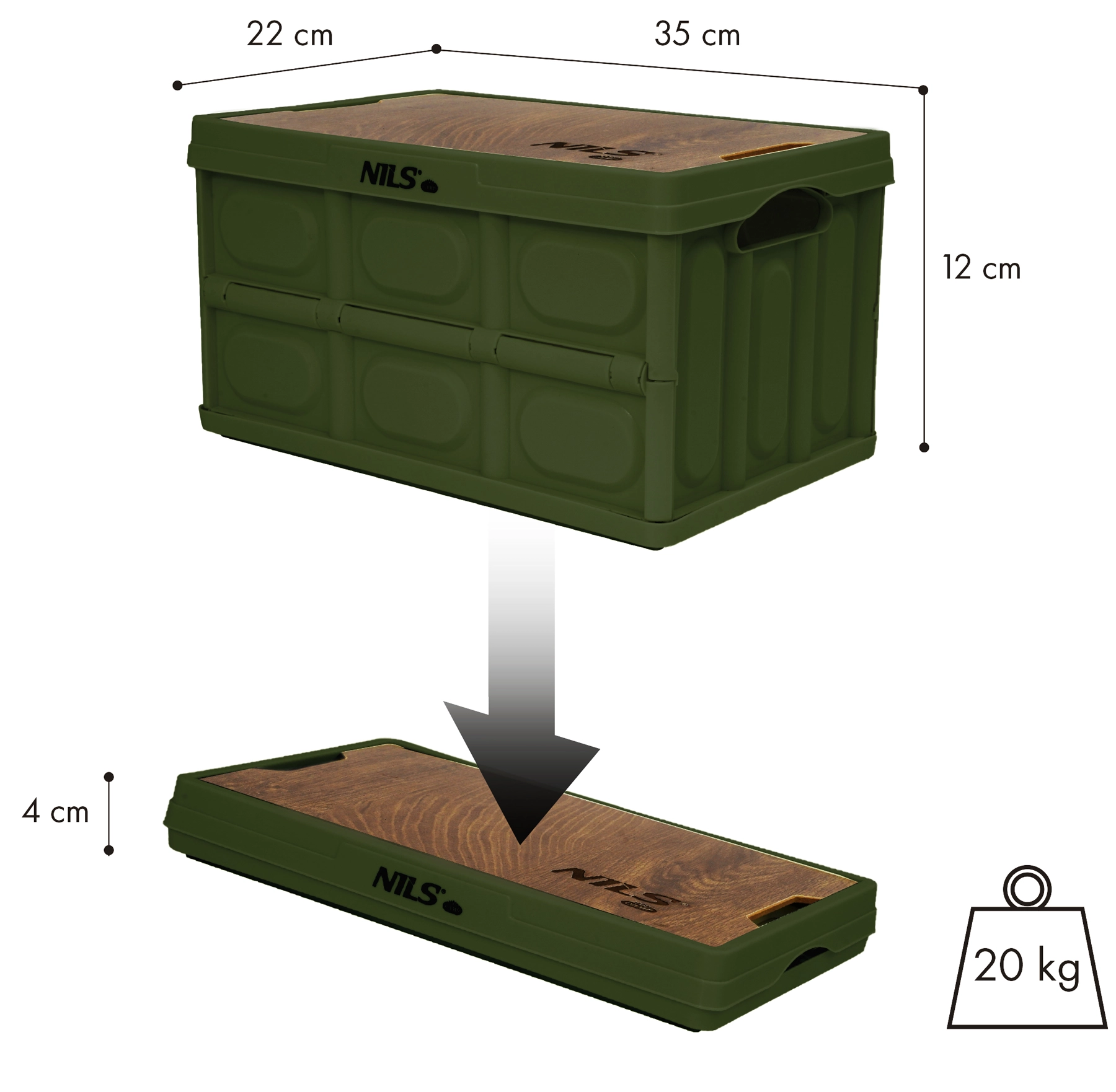Praktična sklopiva kutija s drvenim poklopcem 2u1 nudi kompaktne dimenzije, slagivu konstrukciju i volumen od 9 litara. Lagana izvedba od izdržljivog polipropilena idealna je za auto, kućanstvo, kampiranje i radionicu. Poklopac ujedno služi kao stabilna radna ploha ili stol.