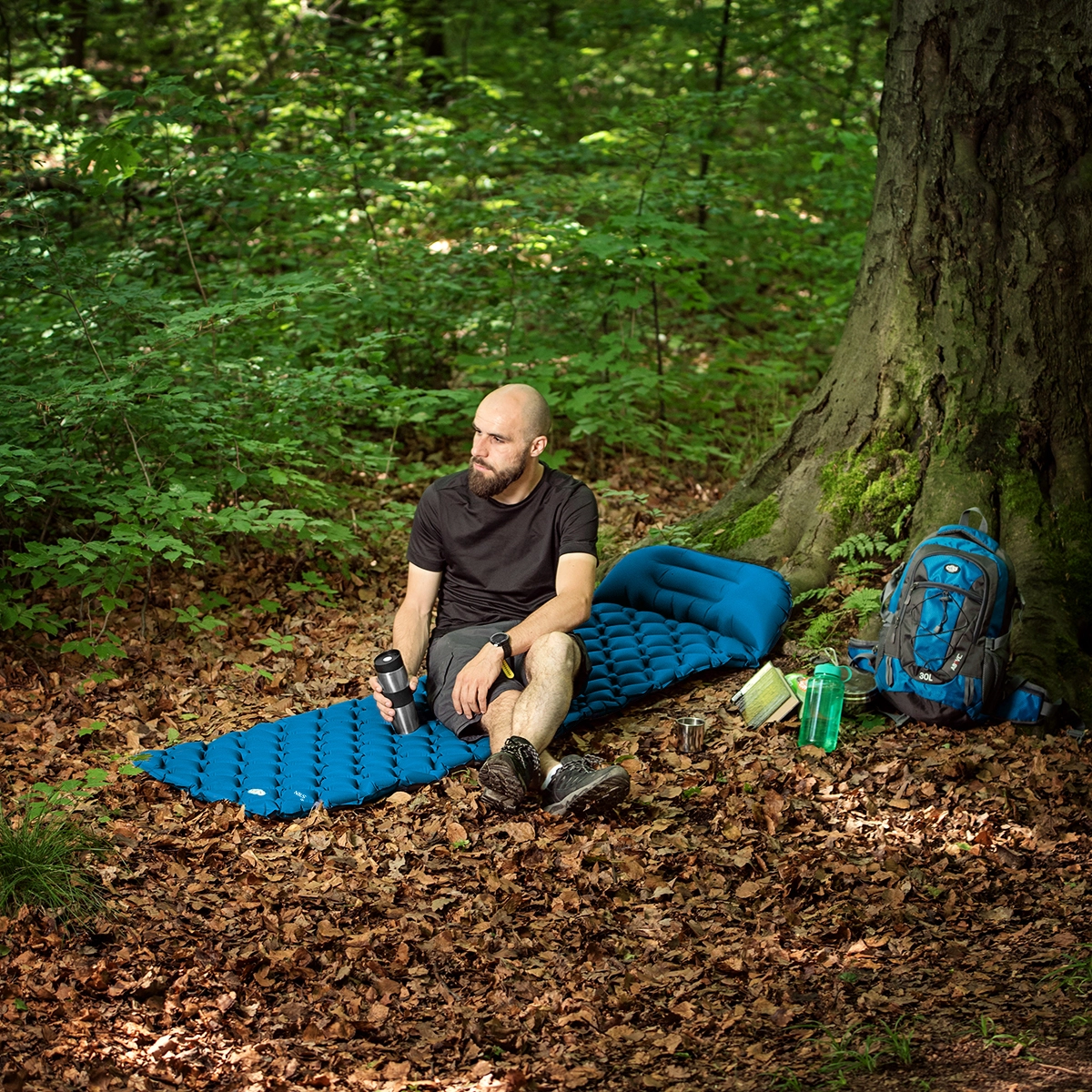Materijal 40D najlon s TPU premazom odlikuje se elastičnošću, otpornošću na habanje i vlagu te se nosi s promjenjivim vremenom. Nakon upotrebe podlogu lako smotate, osigurate priloženim remenom i spremite u praktičnu futrolu. Težina od samo 680 g i male dimenzije nakon pakiranja čine je idealnim izborom za planinarenje, kampiranje i putovanja na lako.