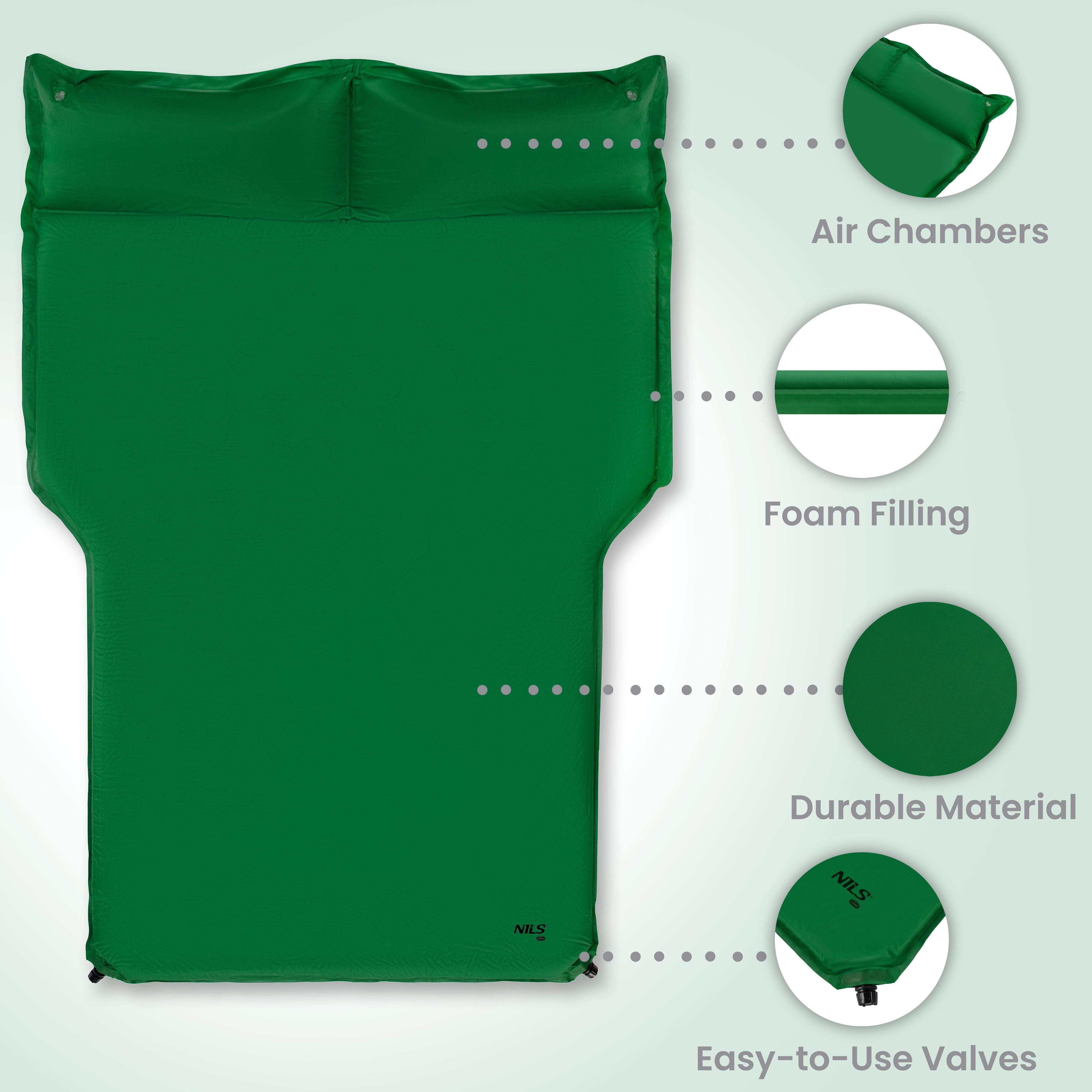 Praktična samonapuhujuća podloga za auto NILS Camp u nekoliko minuta pretvara prtljažnik vašeg vozila u udobno mjesto za spavanje. Zahvaljujući debljini 5 cm, integriranim jastucima i izdržljivim materijalima nudi udobnost, brzu pripremu i pouzdanu izolaciju za car camping, izlete i hitna noćenja.